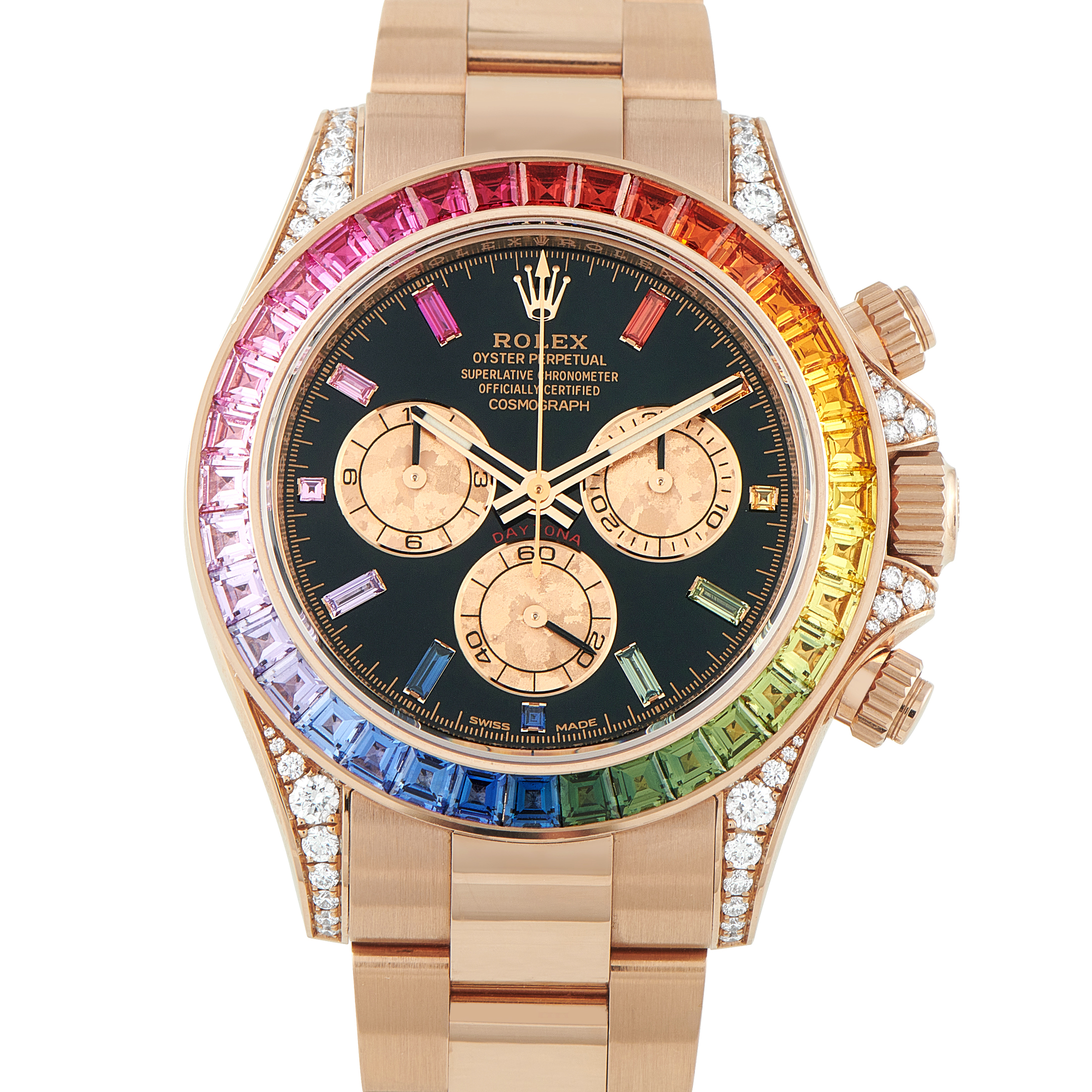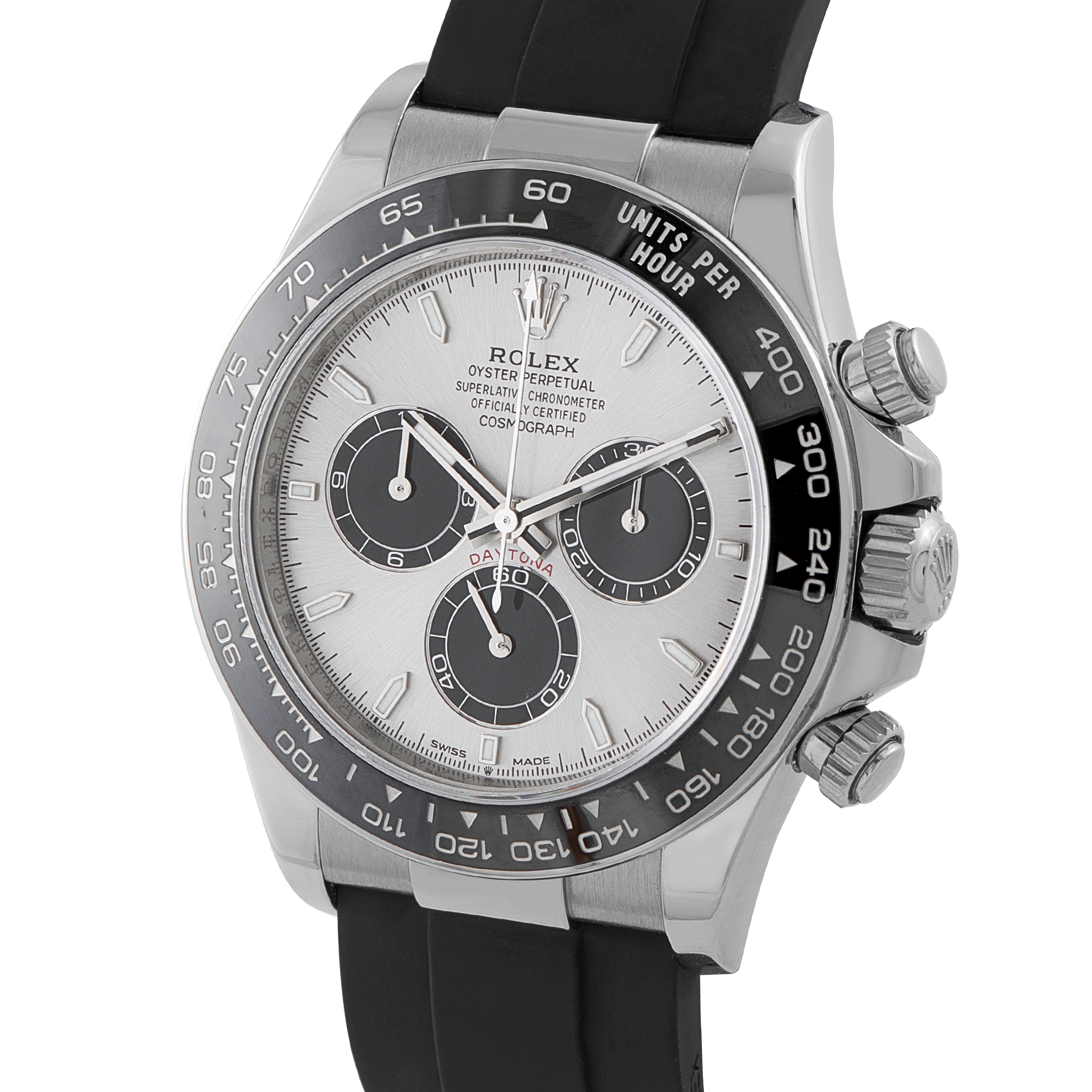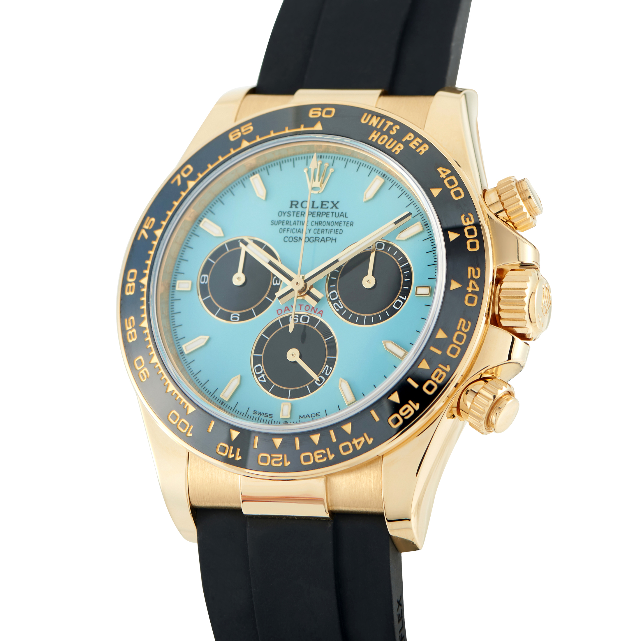 Finally, in 2000, Rolex unveiled a brand new Daytona collection, this time featuring in-house-made movements. The most modern Daytona watches are available in steel, two-tone yellow gold and steel, yellow gold, white gold, Everose gold, and platinum. Some models have a metal bezel while others feature a Cerachrom ceramic bezel. While most Daytona watches are paired with Oyster bracelets, select gold models come fitted with the sporty black rubber Oysterflex bracelet.