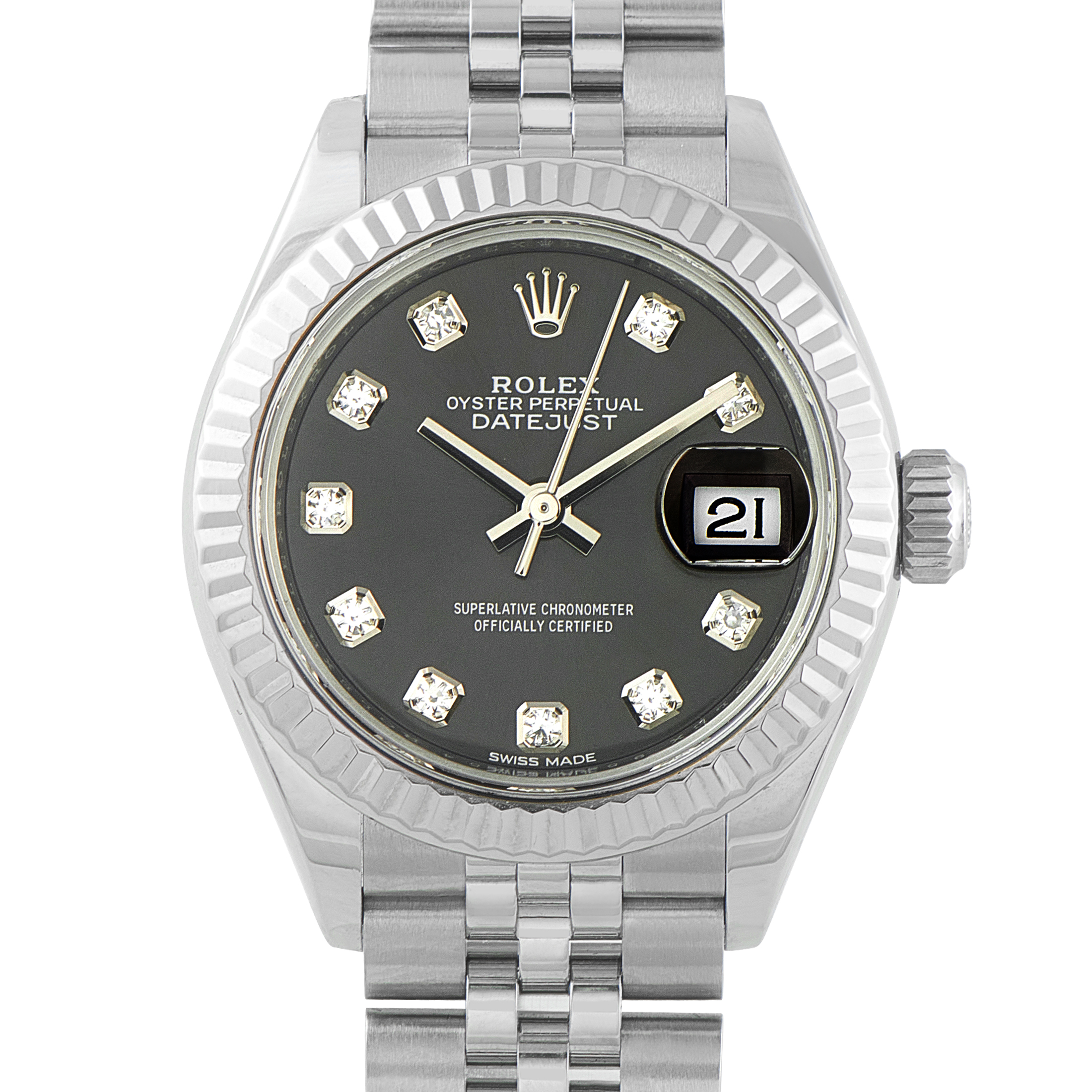 For most of the Datejust’s history, men’s models were sized at 36mm, midsize models were sized at 31mm,  and women’s models were sized at 26mm. However, that changed in 2009 when Rolex introduced the (now-discontinued) Datejust II with a larger 41mm case. A few years later, Rolex also increased the Lady-Datejust to 28mm. And finally, Rolex replaced the Datejust II with the updated Datejust 41. The modern Datejust collection is home to the Lady-Datejust 28, Datejust 31, Datejust 36, and Datejust 41, available in a vast assortment of case metals, bezel styles, dial designs, bracelet types, and price points.