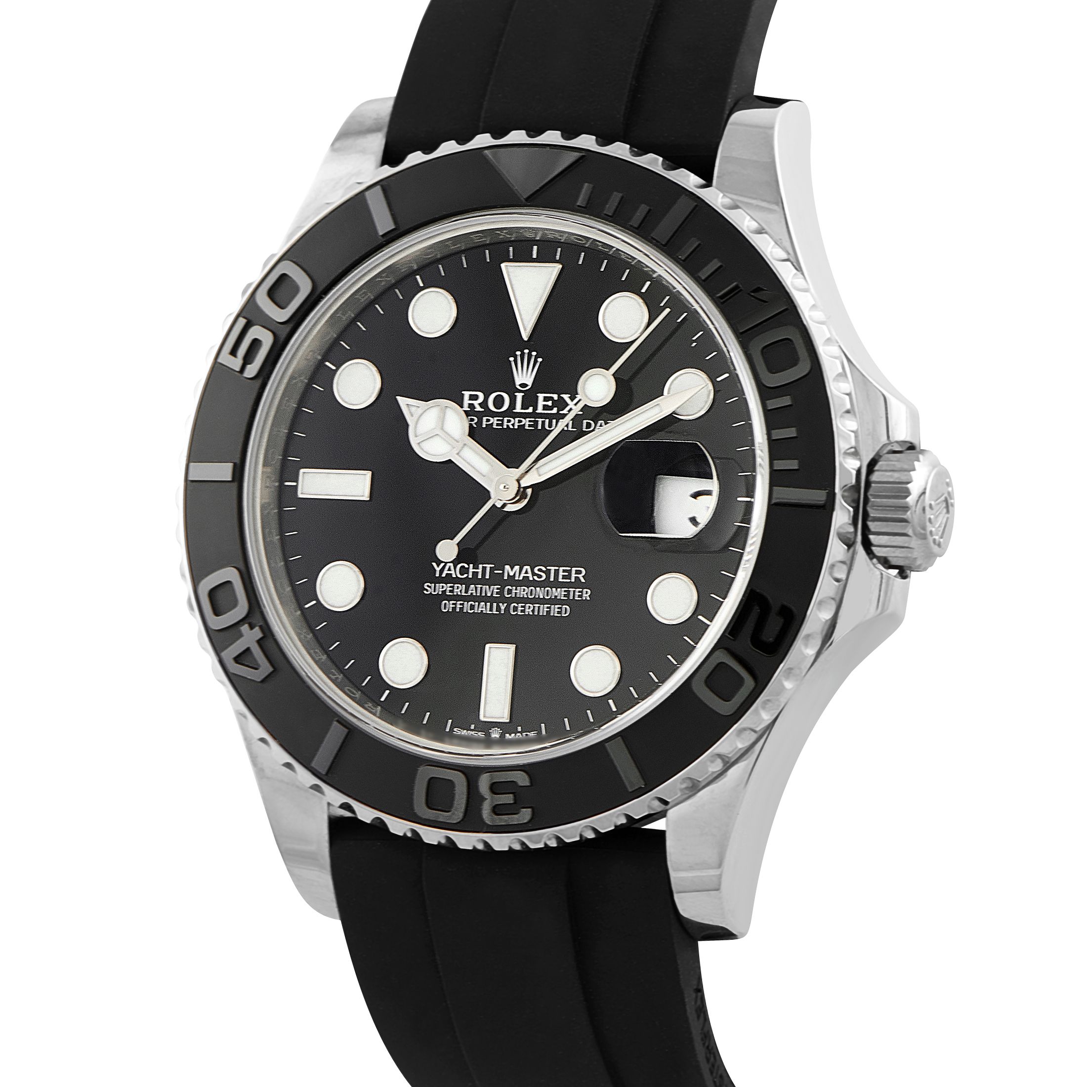 Rolex used to make a white gold Yacht-Master II with a platinum bezel, however, that model has been discontinued. What remains in the collection are three variants: one in stainless steel, one in yellow gold, and one in two-tone steel and Everose gold. All versions are topped with a bright blue Cerachrom bezel, which is called a Ring Command bezel because turning it is how the wearer sets and synchronizes race start times.