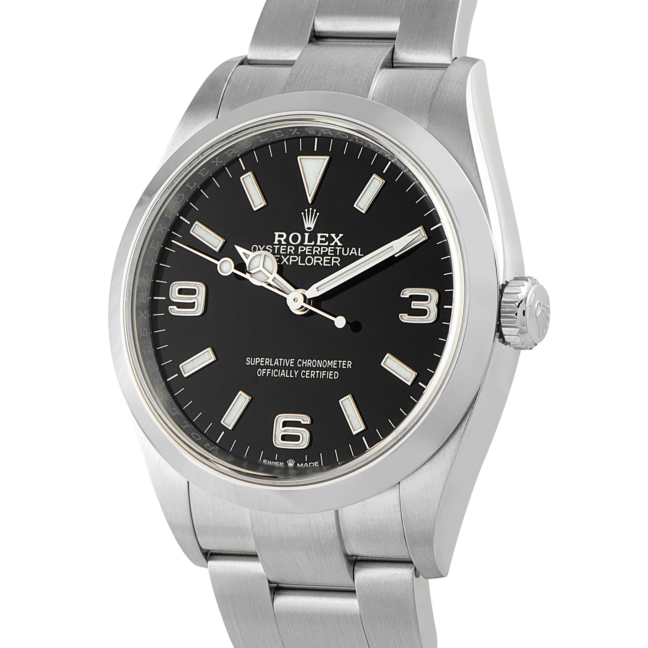 Throughout most of its history, the Explorer watch featured a 36mm case and was only available in stainless steel. Rolex did increase the size of the Explorer to 39mm in 2010, however, in 2021, the Explorer returned to its original 36mm dimensions. That same year, Rolex unveiled, for the very first time, a two-tone Explorer in steel and yellow gold.