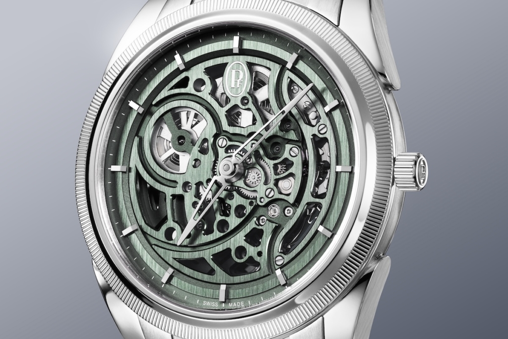 The Parmigiani Fleurier Tonda PF Skeleton gets a splash of color in 2025 with a new 50-piece limited edition in Slate Green. The openworked PF777 movement is rendered in a striking green color inspired by Le Corbusier’s architectural palette, while the suspended indices and skeletonized Delta hands keep legibility high — no easy feat for a skeleton dial.