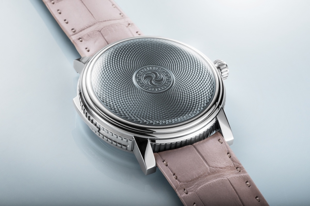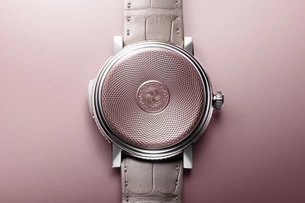 The front, meanwhile, is reserved for artistry. The case, measuring 41.6mm in diameter and 12.65mm thick, is sculpted in 18k white gold and decorated with translucent Grand Feu enamel — a soft pearlescent tone for Dawn Rose and a deep oceanic blue for Midnight Fjord. Beneath the enamel is a guilloché pattern inspired by pinecones and the Fibonacci sequence, rendered by Parmigiani’s go-to masters: Vanessa Lecci for enamel, Eddy Jaquet for engraving, and Yann von Kaenel for the guilloché work.
