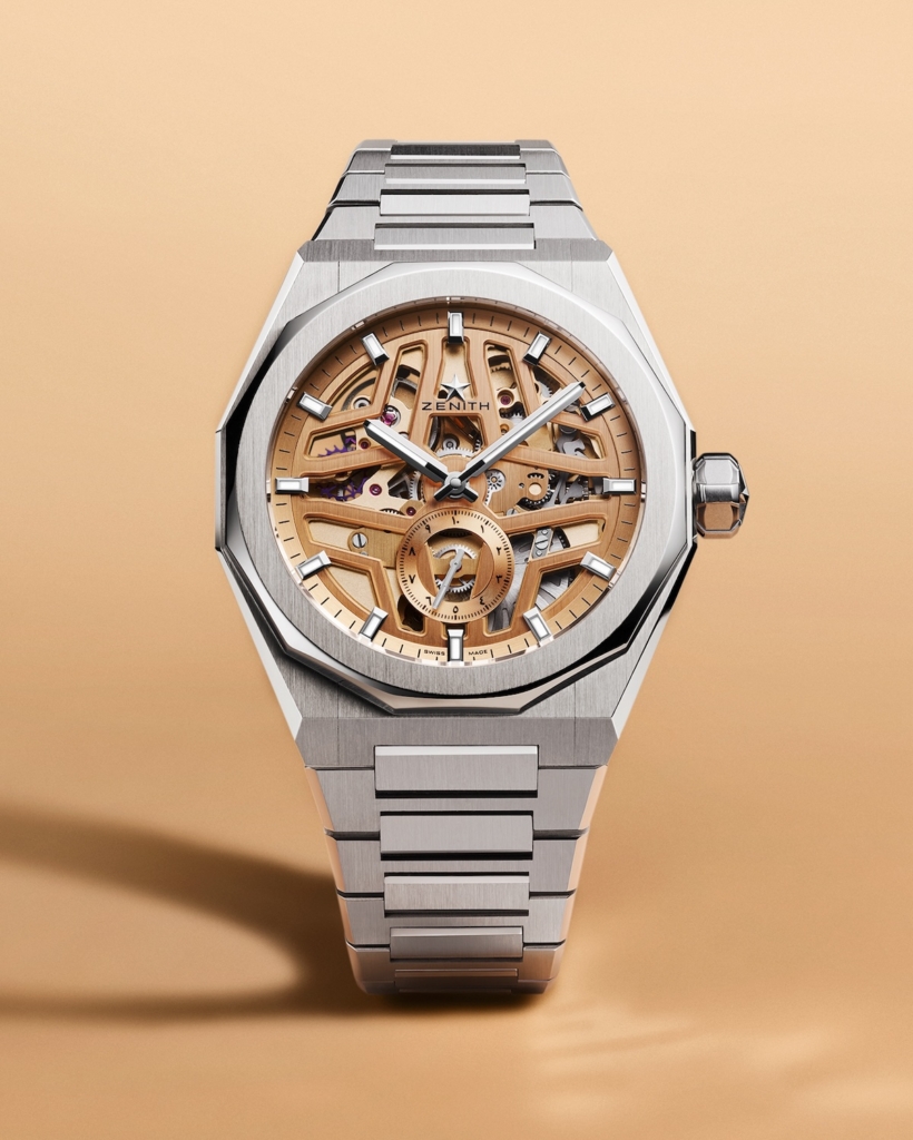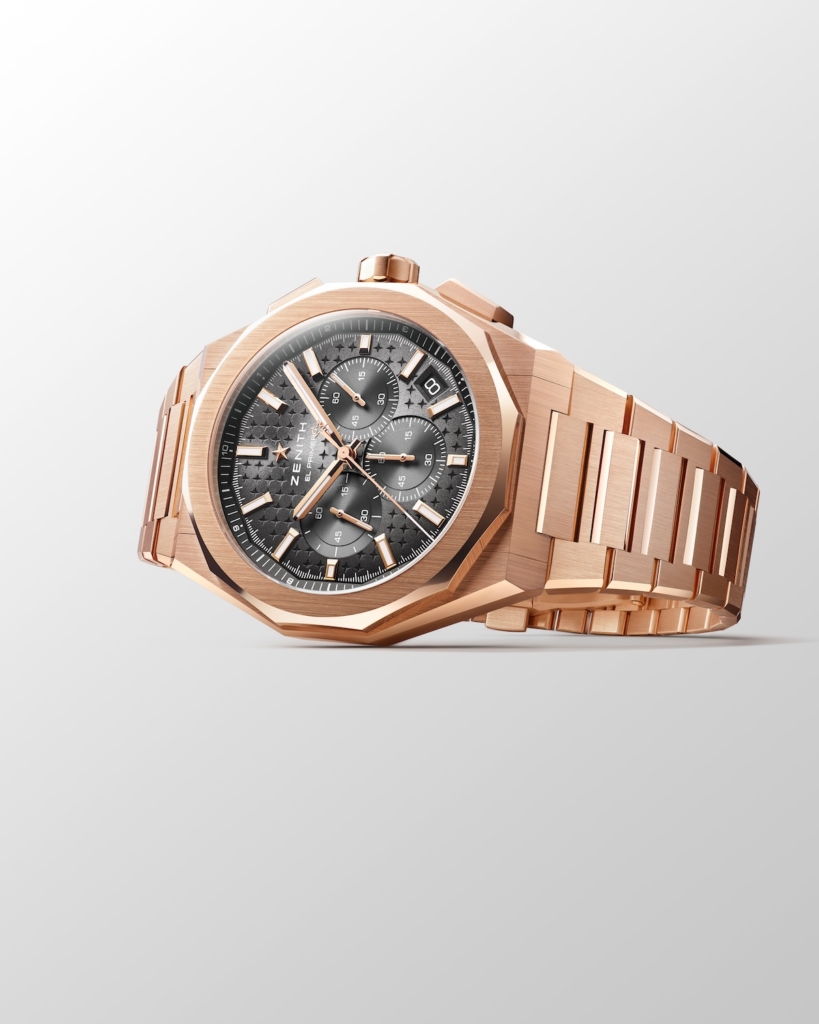 All three models feature Zenith’s tool-free interchangeable strap system and are delivered on matching gold bracelets, with additional rubber straps included.