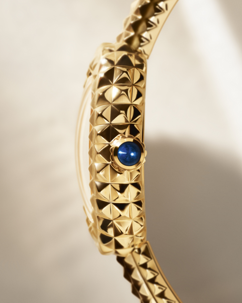 Cartier has given its curvy Baignoire Bangle, released back in 2023, the Clou de Paris treatment. At its release, it will feature two yellow gold variations, one with diamonds and the other without. On the former, a blanket of 100 snow-set diamonds adorns the dial, with inverted brilliant-cut stones perfectly dotted around the bezel and down the bangle bracelet. The non-diamond model features a Clou de Paris dial for a perfectly cohesive look throughout.