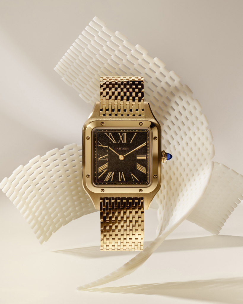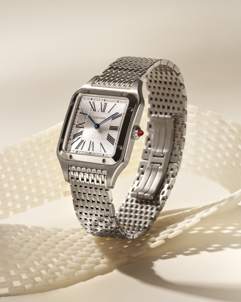 The news here is the brand-new bracelet. The “silky smooth,” multi-link bracelet was inspired by the first made-to-measure bracelets Cartier produced in the 1920s. Now, the brand is revisiting that era with a flexible mesh bracelet made of 15-link rows, totaling 394 links, and each just 1.15mm thick.