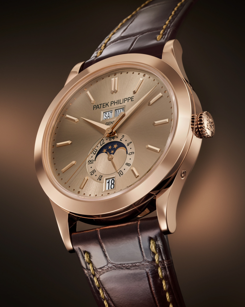 Patek Philippe revisits its Annual Calendar lineup with the Ref. 5396R-016, a more classically styled execution that embraces warm tones and understated design. The 38.5mm rose gold case is paired with a sand-beige sunburst dial, a combination that almost looks like a piece of Swiss chocolate with a creamy, nutty center.