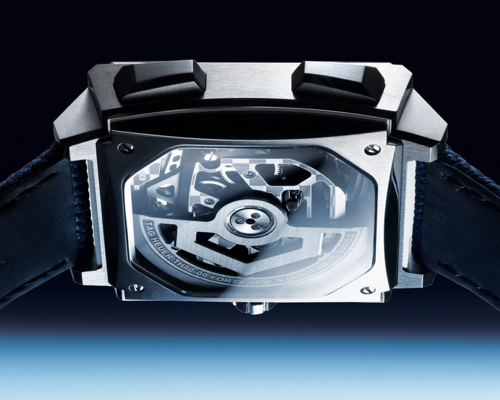 If the standard Monaco update is about refinement, the Monaco Evergraph is where TAG Heuer pushes things into more experimental territory. Positioned as a high-end, avant-garde take on the square chronograph, this model introduces an entirely new movement architecture built around a so-called “compliant” chronograph mechanism.