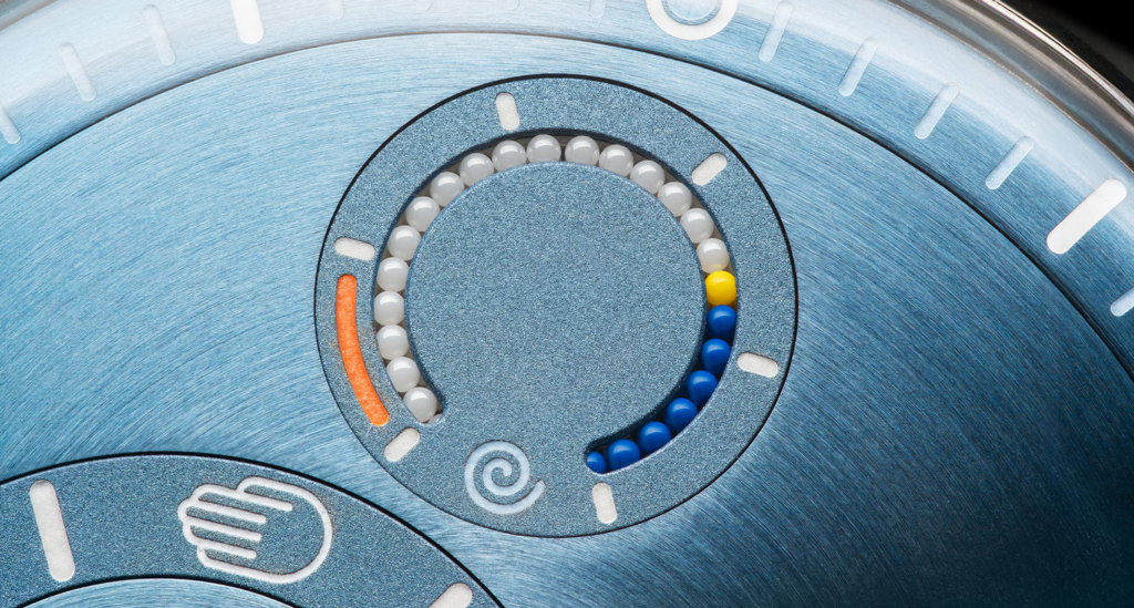 An interesting touch is the power reserve indicator that uses physical beads as its display. It’s a linear indicator made of ceramic micro‑balls that slide in a channel on one of the satellites, rather than a hand sweeping over a scale. A string of light and dark ceramic micro‑balls sits in this track; as the mainspring barrels wind and unwind, the power‑reserve mechanism mechanically shifts the position of the string, so more of the light beads become visible when the watch is fully wound, and more of the dark beads show as the reserve runs down. Price of the Type 11, with a case and bracelet made of grade 5 titanium, is around $30,000.