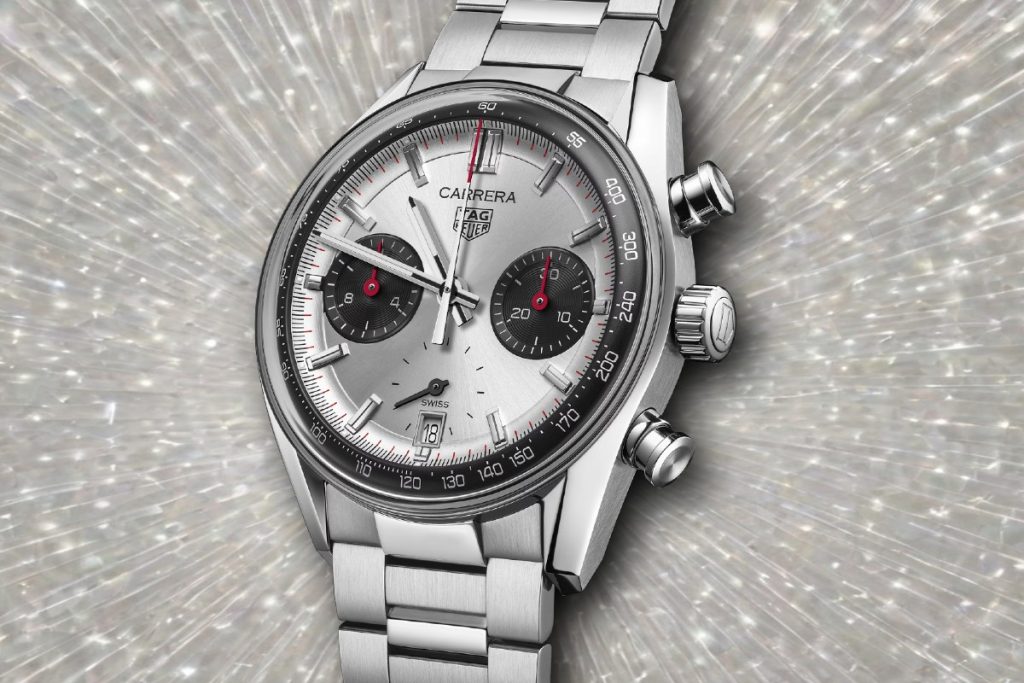 While the models that preceded it had black or blue dials and matching leather straps, this 2024 novelty has a striking silver panda dial with black sub-dials and a three-row metal bracelet – a bracelet option we haven’t seen on the 39mm Glass Box Carrera Chronograph until now. This is one of the best TAG Heuer models when it comes to balancing vintage influence and modern design.