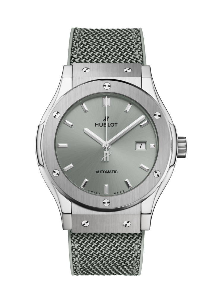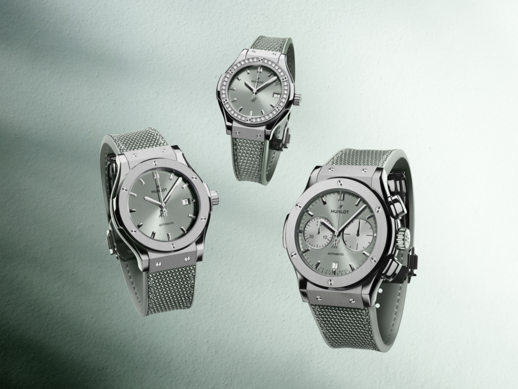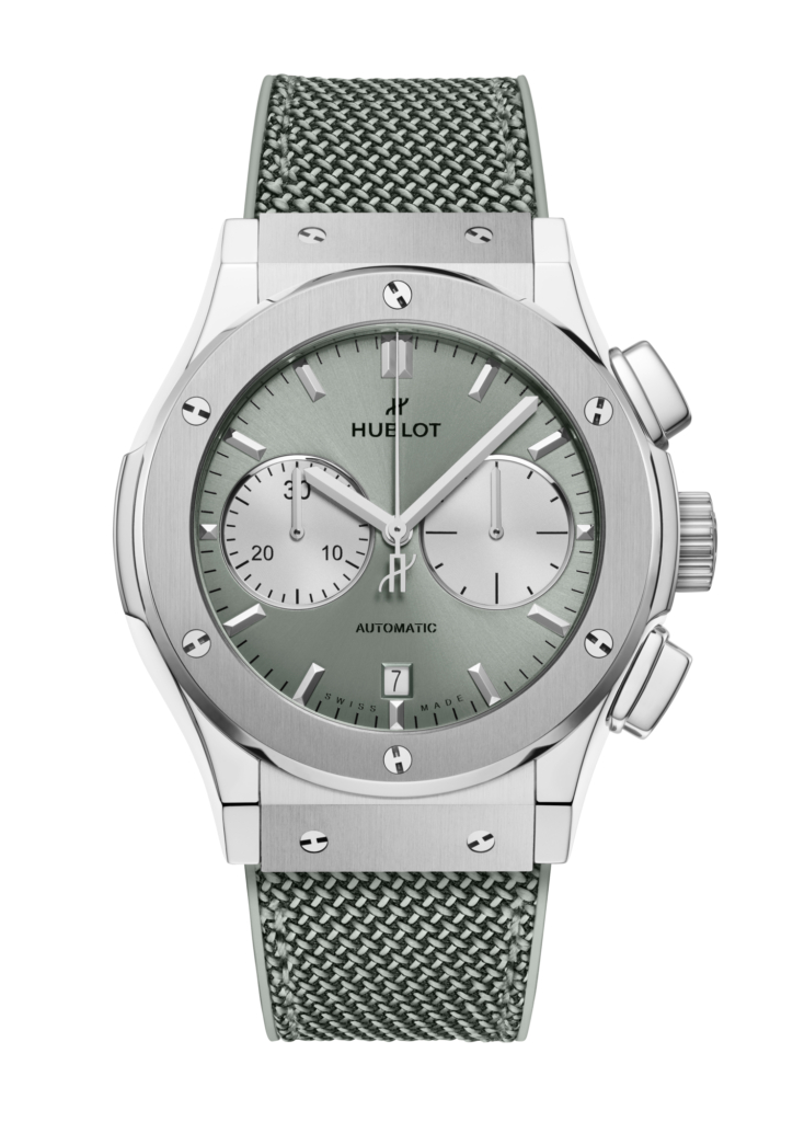 Last year, Hublot released the Classic Fusion in taupe. The muted yet somewhat contemporary hue has laid the groundwork for the collection’s newest offerings for 2026: A trio of sage green and titanium watches. Options include a 33mm model with a diamond-studded bezel and a quartz movement, a 42mm model with an automatic movement, and a larger 45mm chronograph. Each features the frosty new sage green dial and a matching sage green rubber/fabric strap.