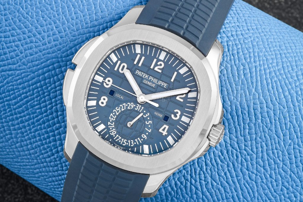 The blue Aquanaut Travel Time ref. 5164G, one of the 2024 Patek Philippe releases, is unsurprisingly among the latest watches trading well above retail. With a market value around $130,000, it’s in line with other hot watches that trade at more than double their retail value. This model’s distinctive greyish-blue color makes it a standout in the collection.