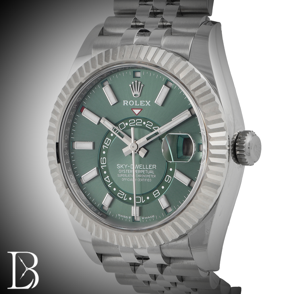 Mechanics aside, new to the 2023 Sky-Dweller collection are some fresh dials: a blue-green dial and a mint green dial. The blue-green dial is fitted into the full rose gold Sky-Dweller while the mint green dial (a color once reserved for the Datejust collection) is found within the steel Sky-Dweller with a white fluted bezel.