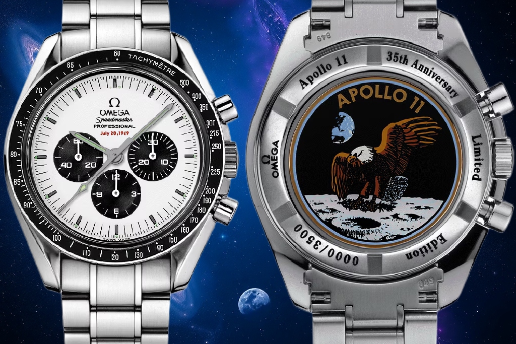 3,500 were produced, which is a lot for a “limited edition,” so you can typically find these 35th anniversary Apollo 11 Speedmasters for under $10,000.