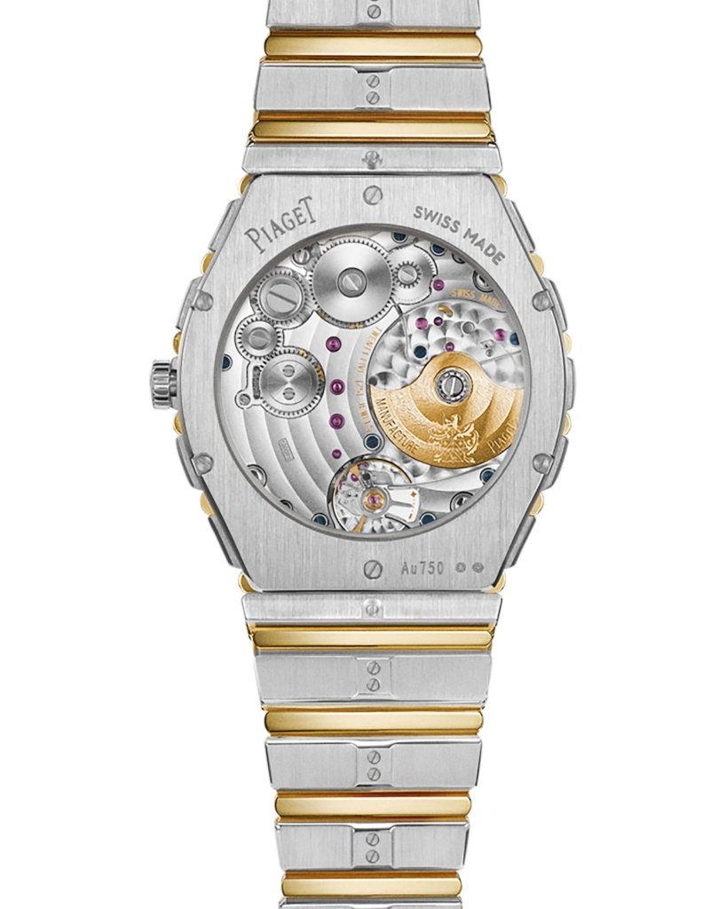 Sized at 38mm with a fully integrated bracelet, the Polo 79 Two-Tone keeps the same proportions as previous reissues. Inside is Piaget’s ultra-thin caliber 1200P1, a micro-rotor automatic movement measuring just 2.35mm thick, allowing the watch to maintain its characteristically slim profile on the wrist.