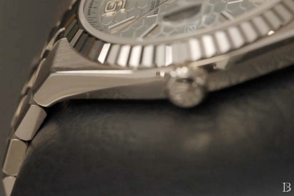 Rolex’s laser-etched honeycomb dial pattern up close
