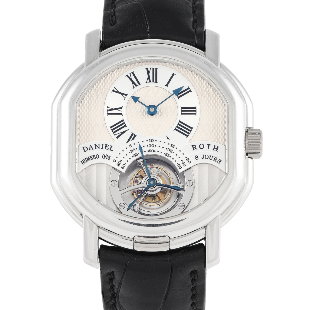 Some high-end brands, like Breguet and Daniel Roth, prefer to have a (shorter) serial number for each model, rather than a long string of digits unique within the brand. In these cases, the serial number is often under the logo on the dial. When you’re making less than 10,000 of a model (or less than 20 if you’re Daniel Roth) this is an option, but it’s not feasible for more mass-produced brands.