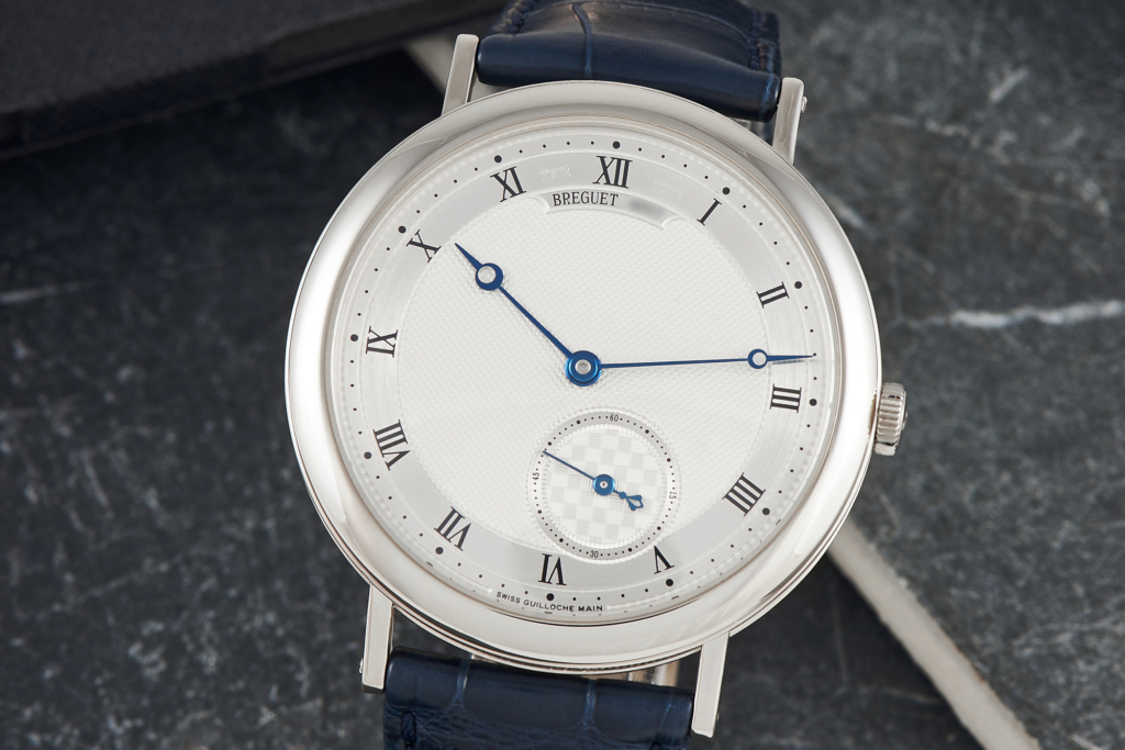 I would suggest ref. 5140BB in particular, made from 2006-2016 with an understated 40mm white gold case and an ultra-slim (2.4mm) automatic movement. In total the 5140BB is just over 10mm thick, though, which some collectors found disappointingly thick given the thin movement and solid caseback. You can find a 5140BB for about $13,000 pre-owned, or you can splurge a bit more for the 7147BB that replaced it in 2016, with a significantly slimmer height of 6.1mm. You can see our Breguet price guide for more Breguet options in this price range.