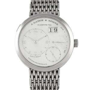 This A. Lange & Söhne Lange 1 Soirée Mother of Pearl Dial 18K White Gold Watch 160.029 is offered in pre-owned condition, inclusive of papers and the manufacturer’s box.