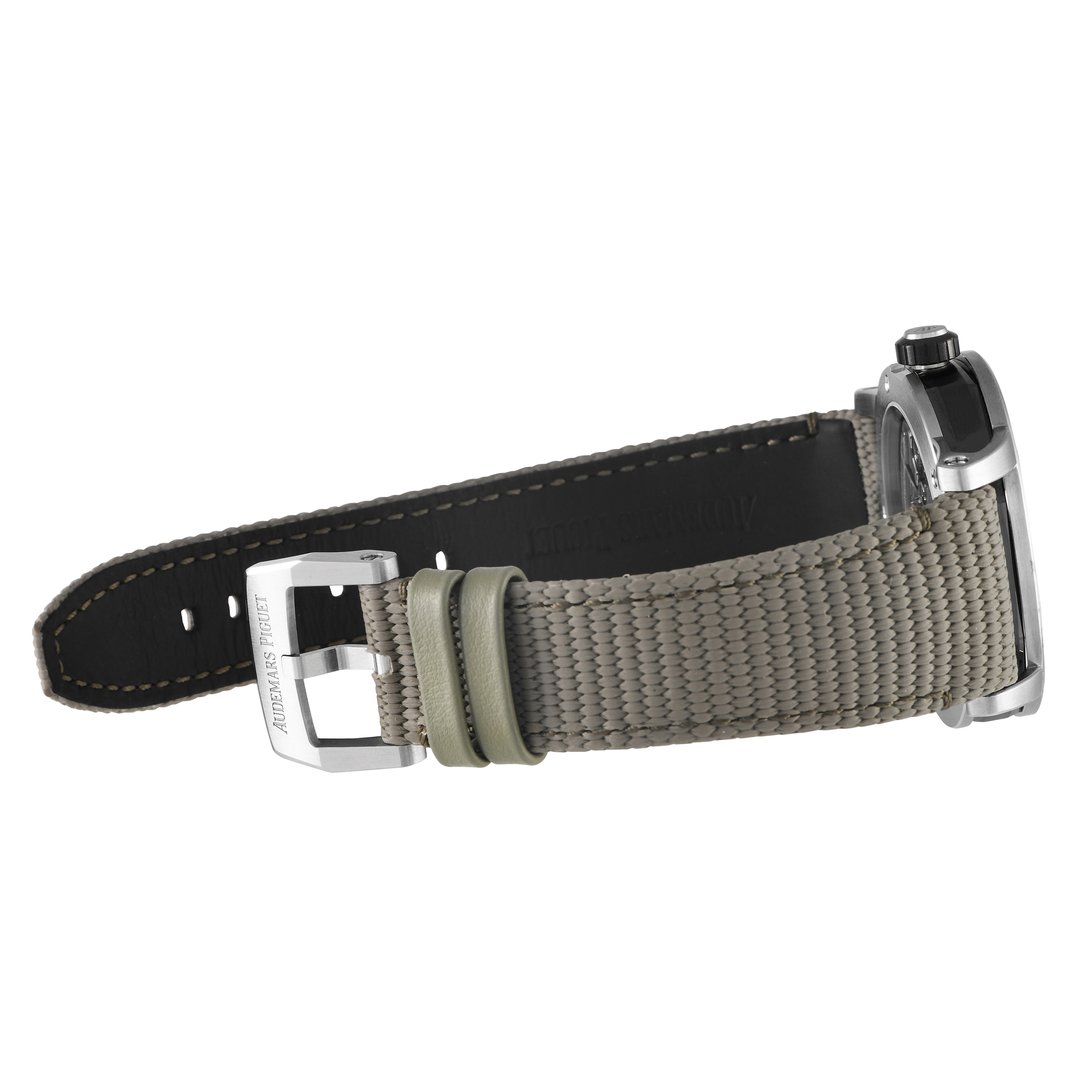 This pre-owned Audemars Piguet Code 11.59 Steel and Ceramic Selfwinding Watch 15210QT.OO.A064KB.01 is accompanied by papers and the manufacturer’s box.
