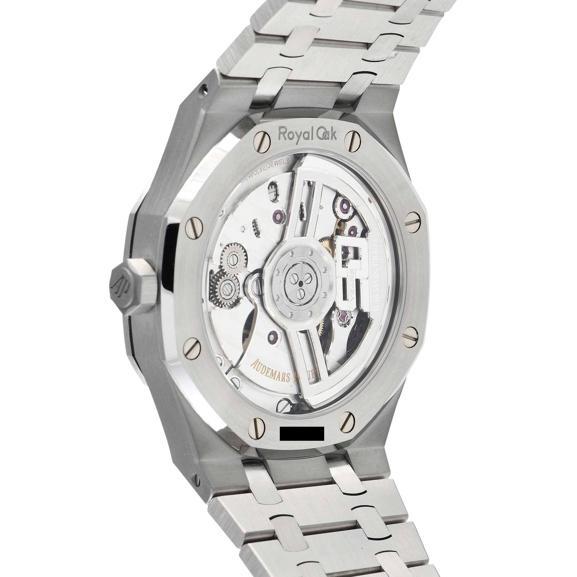 Stunning in its simplicity, this 50th Anniversary Royal Oak with a khaki green dial is a clear representation of Audemars Piguet’s expert craftsmanship and commitment to innovation. This watch has the special “50 Years” engraving on the rotor and is equipped with AP caliber 4302 self-winding movement released for 2022 only. The stainless steel case measures 41mm in diameter and is complemented by a steel bezel and bracelet. The elegant khaki green dial has a Grande Tapisserie pattern outfitted with applied white gold hour markers and Royal Oak hands, all with luminescent coating. A date window is discreetly positioned at 3 o’clock.