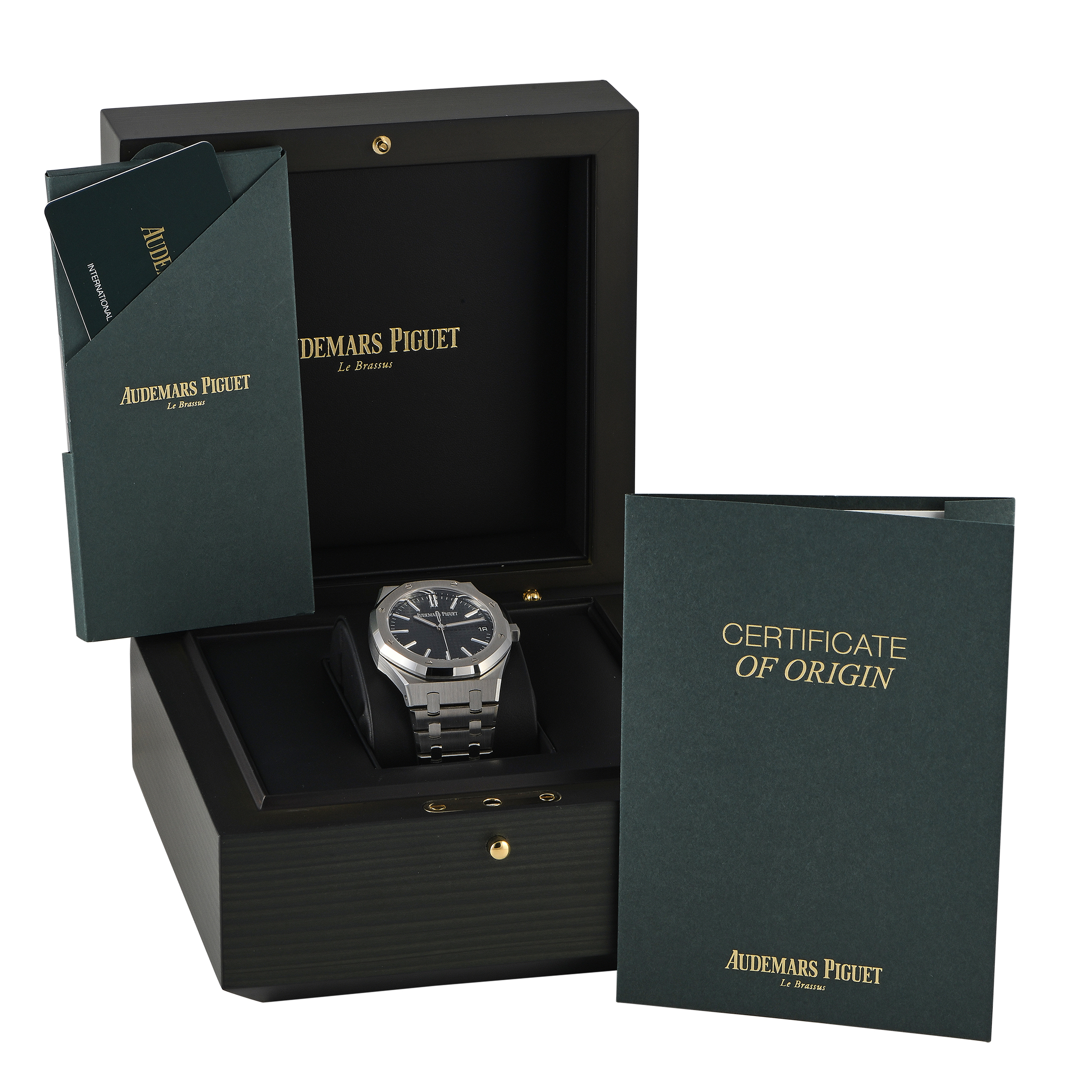 This unworn Audemars Piguet Royal Oak 50th Anniversary Green Dial Watch 15510ST.OO.1320ST.04 comes with papers and the manufacturer’s box.