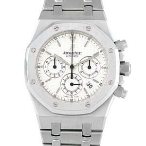 Offered in pre-owned condition, this Audemars Piguet Royal Oak White Dial Stainless Steel Chronograph Watch 25860ST.OO.1110ST.05 comes with the manufacturer’s box.