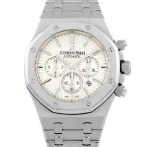 A gift box accompanies this pre-owned Audemars Piguet Royal Oak Chronograph Steel Watch 26320ST.OO.1220ST.02.