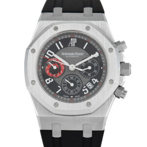 Here is one of the most covetable limited edition chronographs, available in only 1,250 pieces. The Audemars Piguet Royal Oak City of Sails ref. 25979ST.0.0002CA.01 was produced to celebrate the victory of Alinghi, a Swiss team, in the 2003 America’s Cup which was held in Auckland, New Zealand (nicknamed the City of Sails). It features a 40mm stainless steel case and a black dial with grey hobnail center, luminescent hands and Arabic numeral hour markers, and three registers. The hour chrono totalizer at 9:00 has the red logo of the Alinghi team. Inside this watch is Caliber 2385 automatic movement with 37 jewels and 40 hours of power reserve.