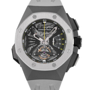 This pre-owned Audemars Piguet Royal Oak Concept Supersonnerie Tourbillon Chronograph Men’s Watch 26577TI.OO.D002CA.01 comes with papers and the manufacturer’s box.