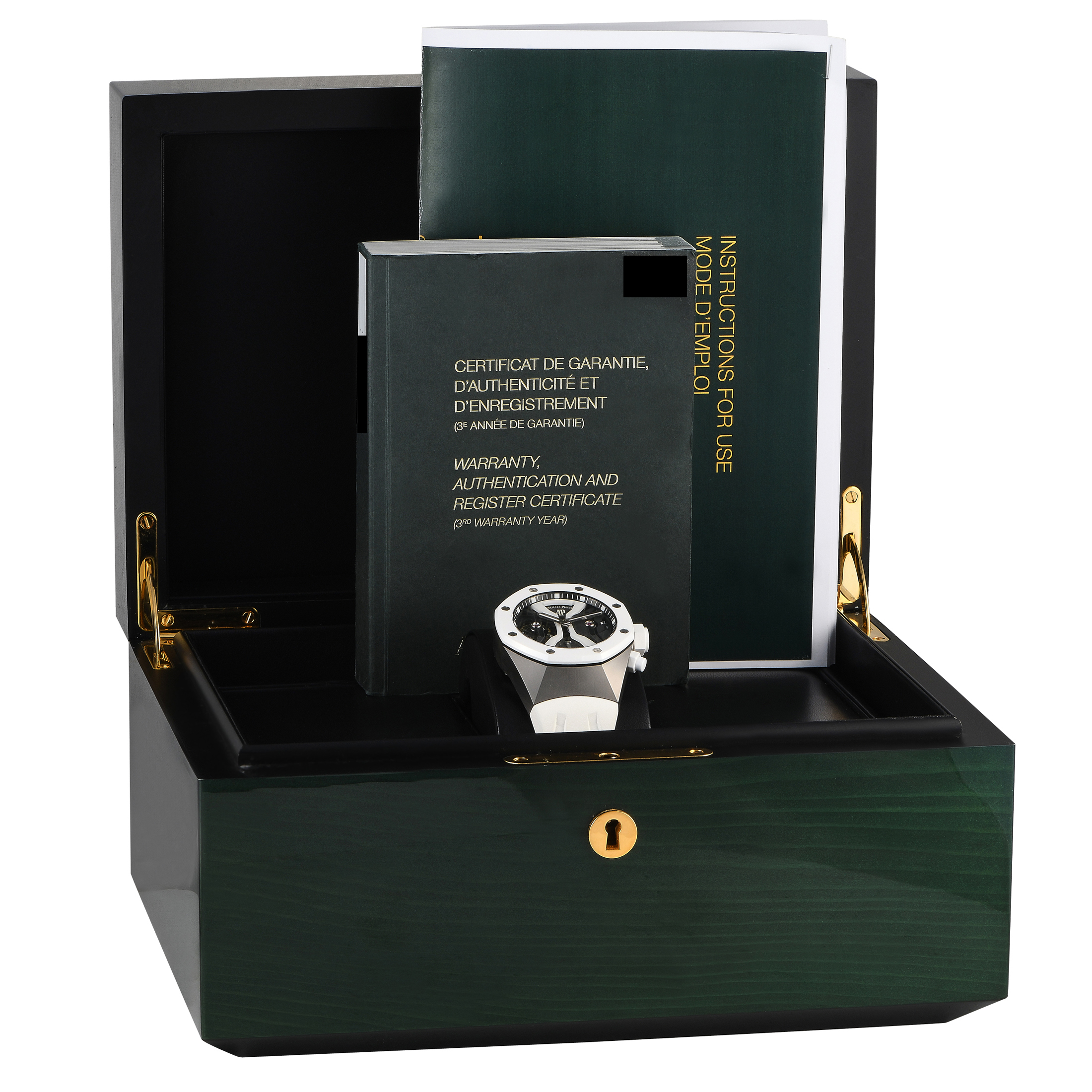 This pre-owned Audemars Piguet Royal Oak Concept Tourbillon GMT Watch 26580IO.OO.D010CA.01 is accompanied by papers and the manufacturer’s box.