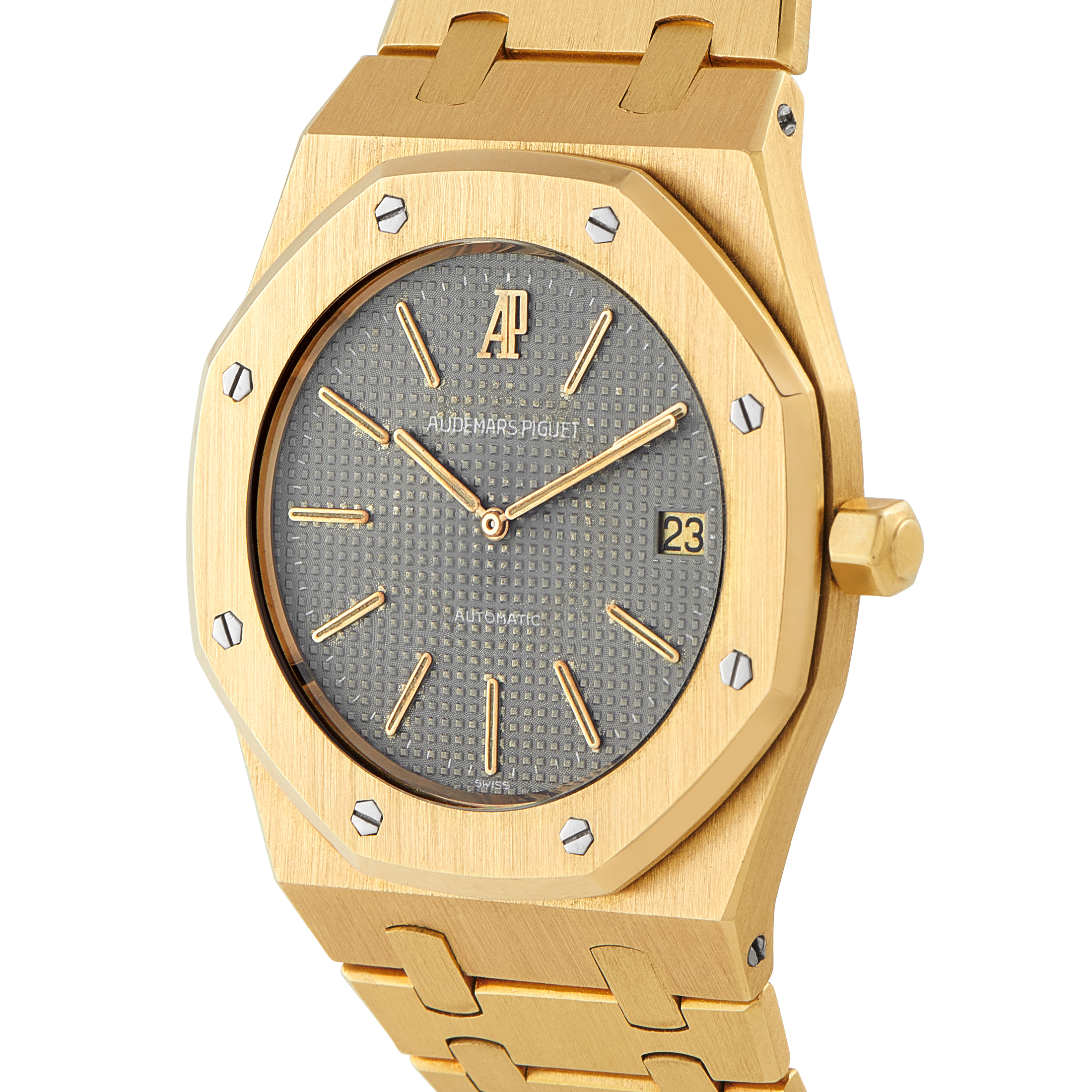 Produced in small numbers during the early years of the Royal Oak, this “Jumbo” reference translates Gérald Genta’s original Royal Oak concept into full yellow gold and retains the ultra-thin proportions, Petite Tapisserie dial pattern, and integrated bracelet that defined the line. It is driven by the slim automatic caliber 2121, known for its superb engineering and reliability. Today, the ref. 5402BA stands as a highly collectible model, valued by collectors for both its scarcity and its role in expanding the Royal Oak’s identity beyond steel.