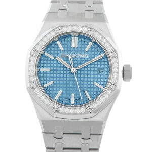 Audemars PiguetRoyal Oak Light Blue Dial Diamond Set Bezel Steel Watch 15551ST.ZZ.1356ST.01