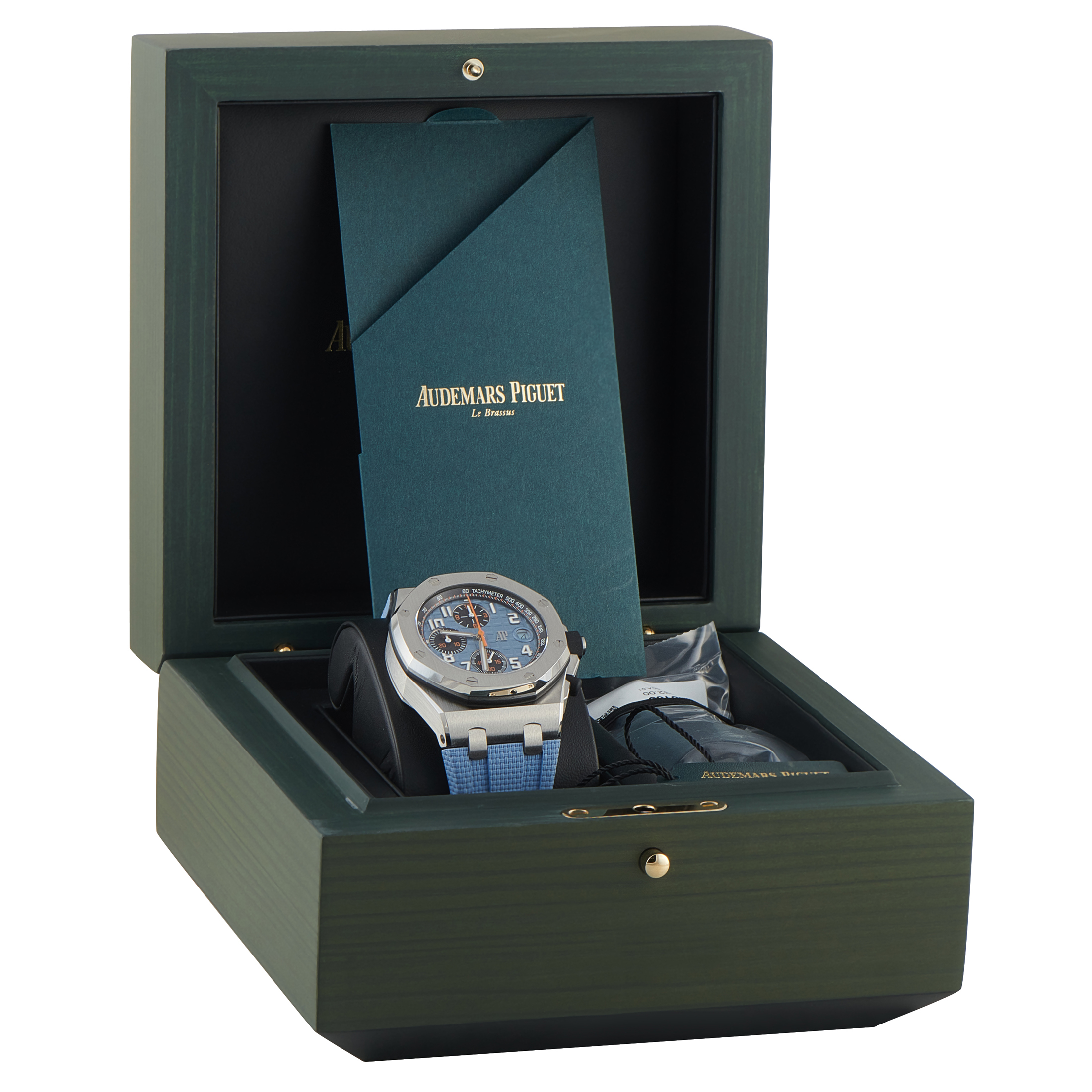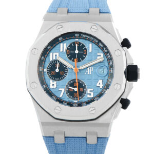 This pre-owned Audemars Piguet Royal Oak Offshore Chronograph Blue Dial Watch 26238ST.OO.A340CA.01 comes with papers and the manufacturer’s box.