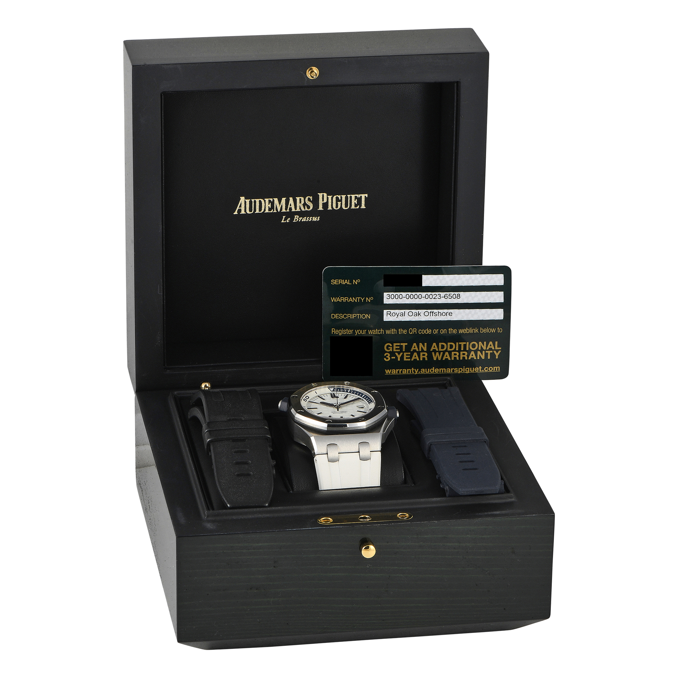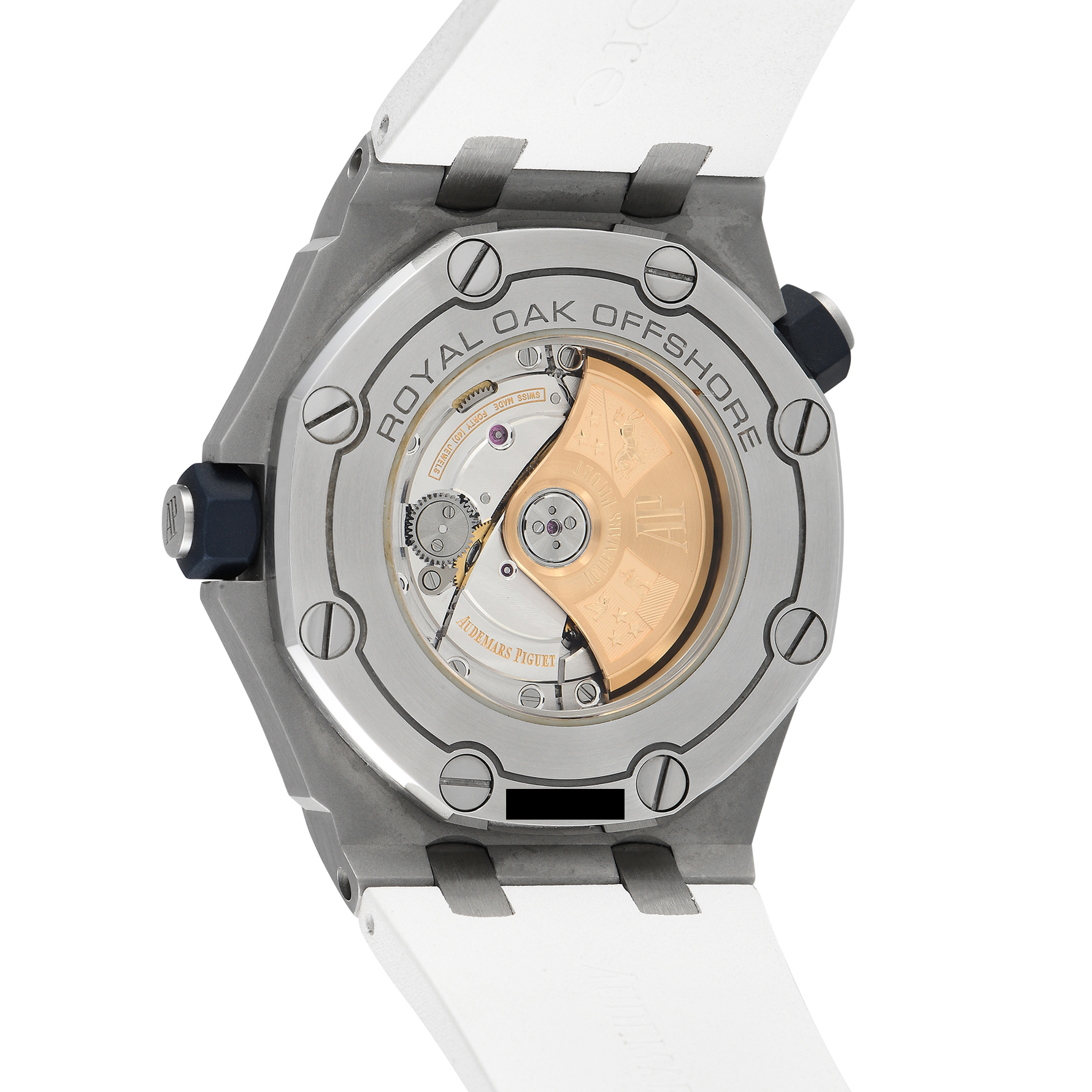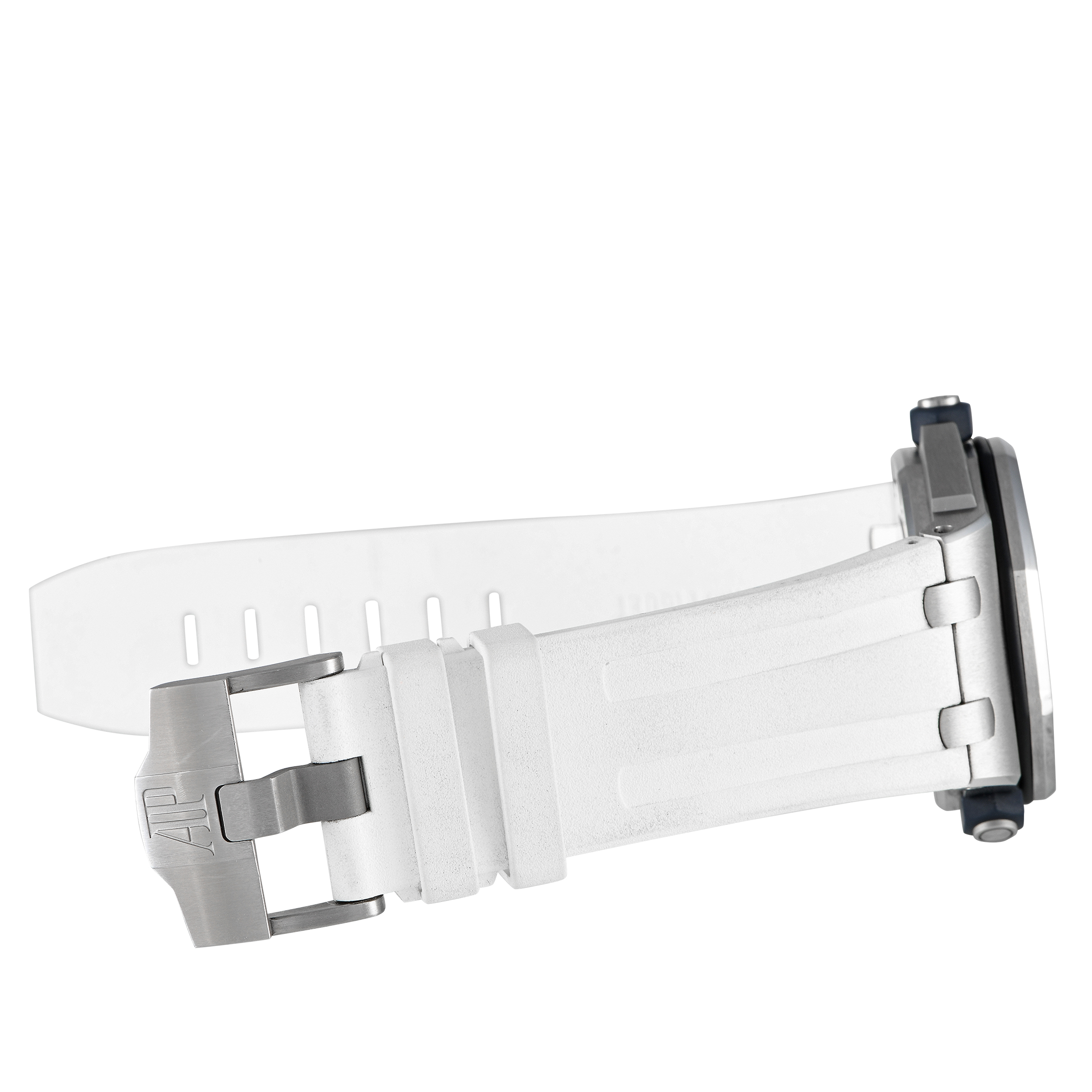 The Royal Oak Offshore Diver ref. 15710ST is perfect for the watch enthusiaste who prefers their timekeeping tool to be robust and versatile, understated yet distinct. This model has a 42mm stainless steel case water resistant to 300m. Its white dial is detailed with a a “Méga Tapisserie” pattern, with applied white gold hour markers and hands – all with blue luminescent coating. The rotating inner bezel with a diving scale is also in white, with the 60 to 15-minute zone in blue for contrast. Matching the dial is a white rubber strap with a tang clasp. Inside the watch beats caliber 3120 self-winding movement with 60 hours of power reserve.