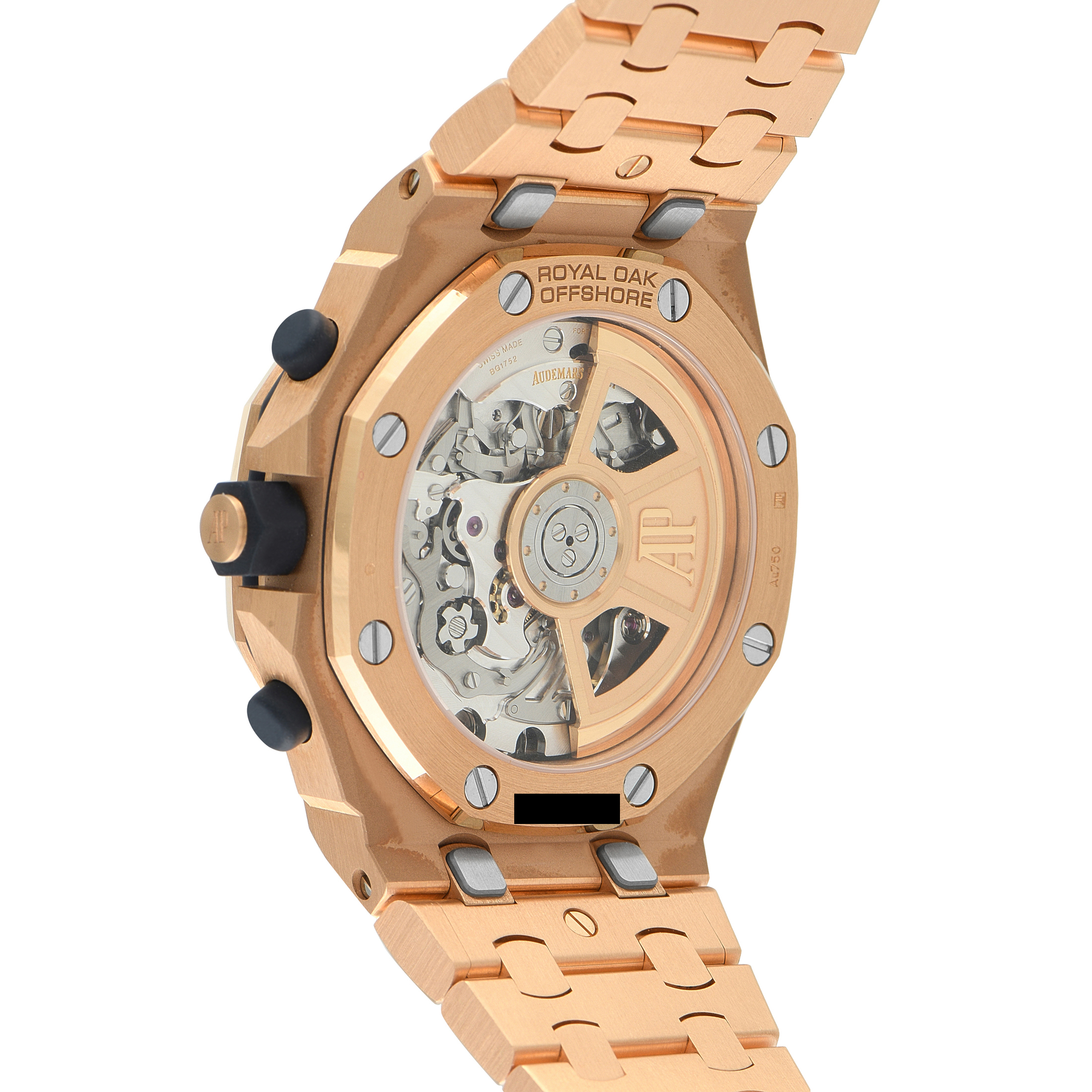This pre-owned Audemars Piguet Royal Oak Offshore Chronograph Rose Gold Watch 26238OR.OO.2000OR.01 is accompanied by a gift box.