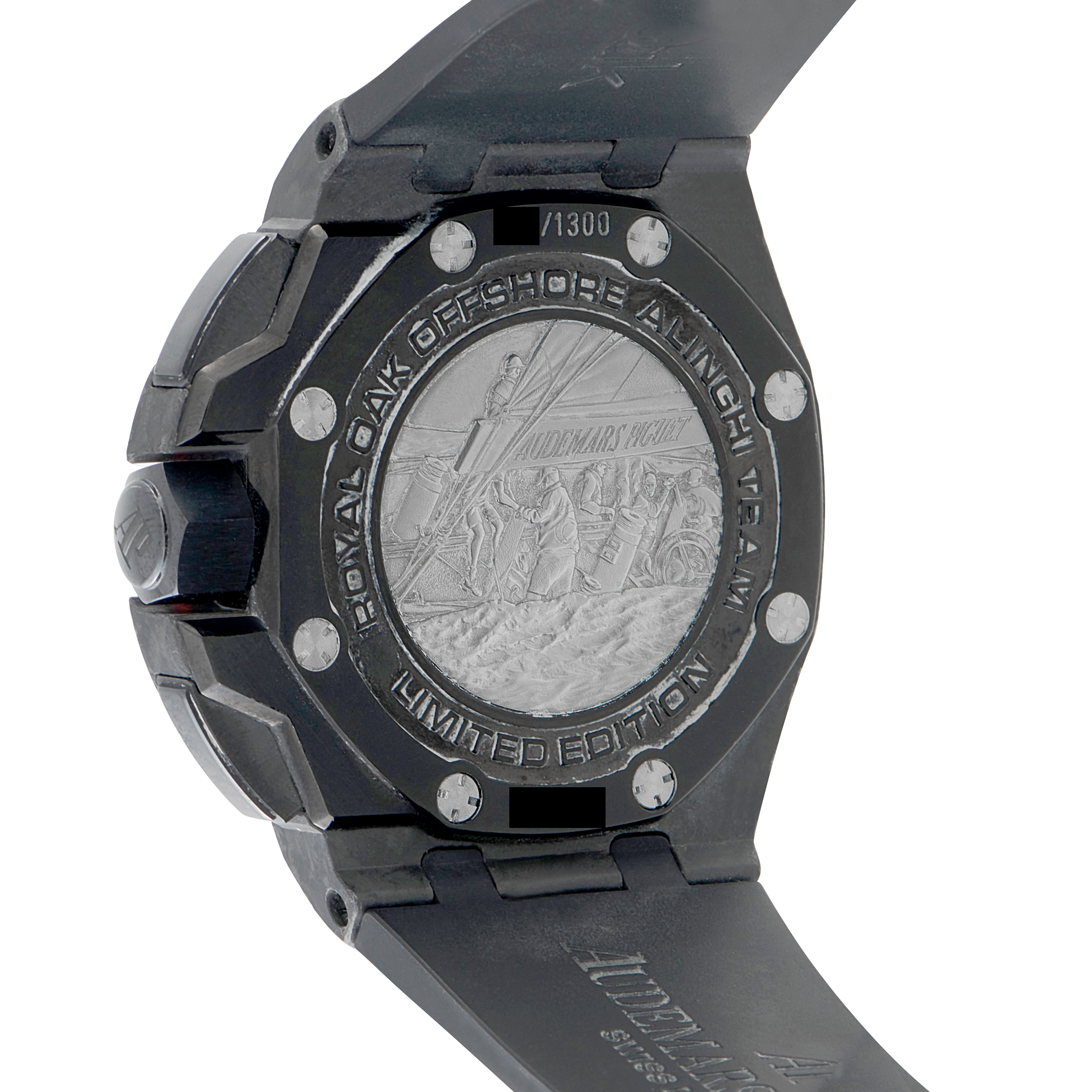 The Audemars Piguet Royal Oak Offshore Team Alinghi Watch, reference number 26062fs.oo.a002ca.01, was introduced to honor the Alinghi sailing team. A picture of the sailing team engraved on the titanium caseback provides the perfect finishing touch.