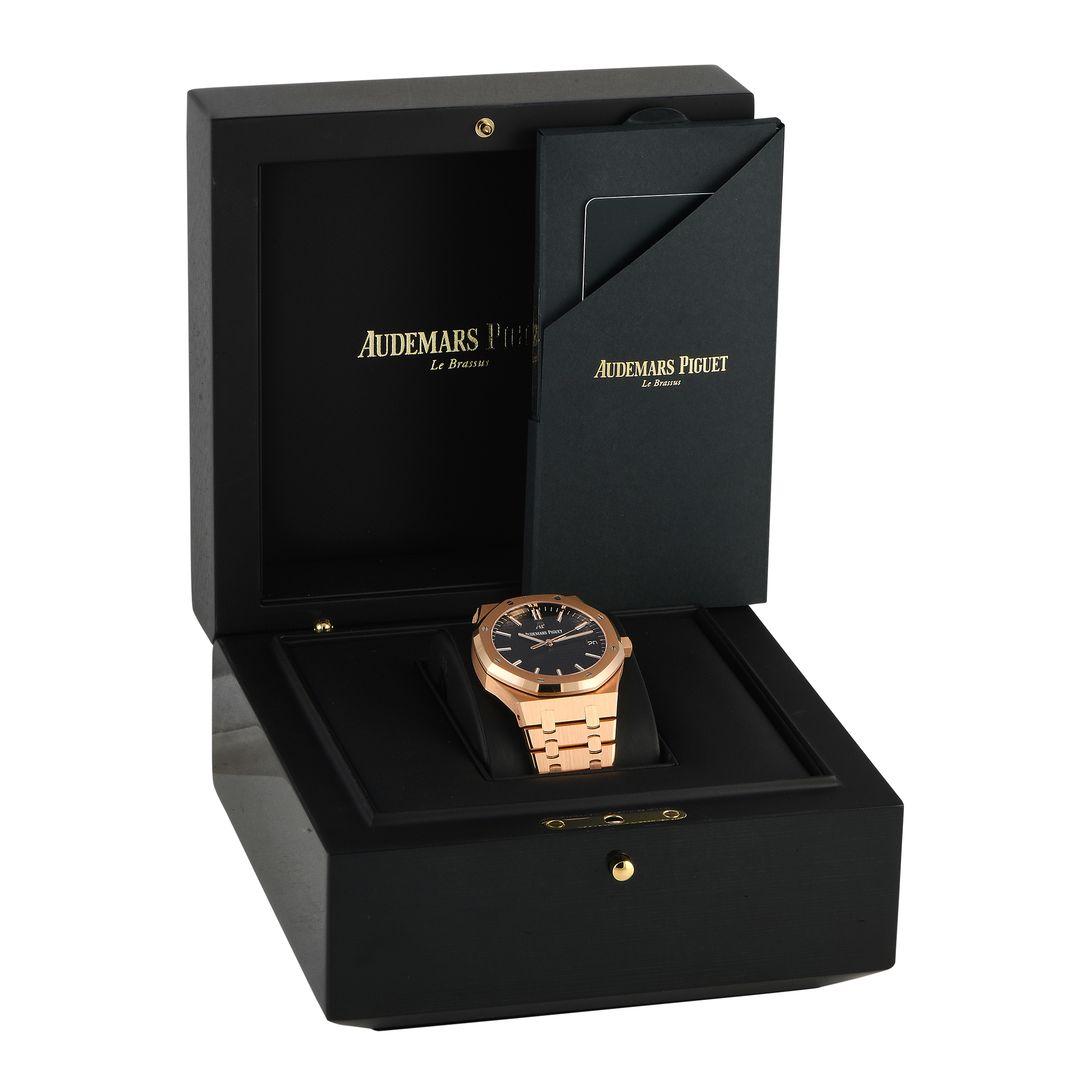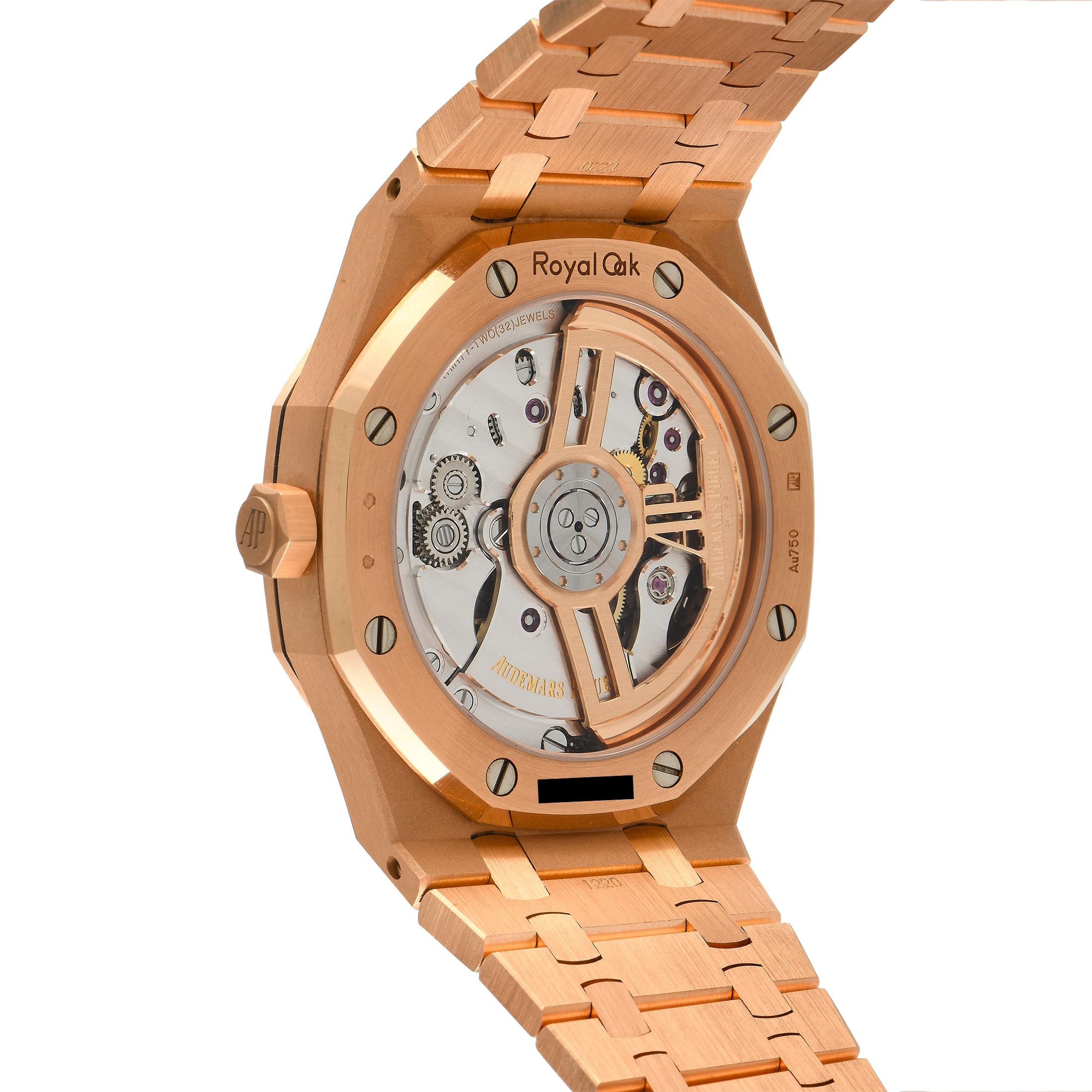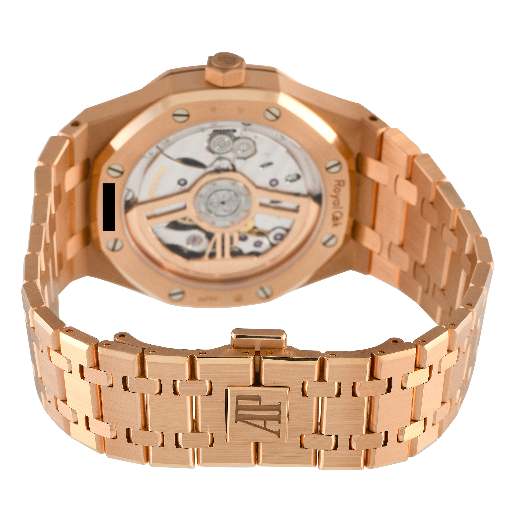A Royal Oak in full 18K rose gold meant for the man looking for a luxurious yet unpretentious wristwatch. This model (ref.15500OR.OO.D002CR.01) comes with a rose gold case, bezel, and bracelet. A no-frills time-and-date dial in black refines the richness of this luxury watch. Housed on its 41mm case is caliber 4302 self-winding movement oscillating at 28,800 vibrations per hour. This 4Hz automatic movement has 257 components, 32 jewels, and 70 hours of power reserve. The movement can be viewed from the transparent caseback.