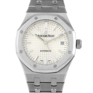 This is a pre-owned Audemars Piguet Royal Oak Silvered Dial Watch 15450ST.OO.1256ST.01.A. It comes with papers and the manufacturer’s box.