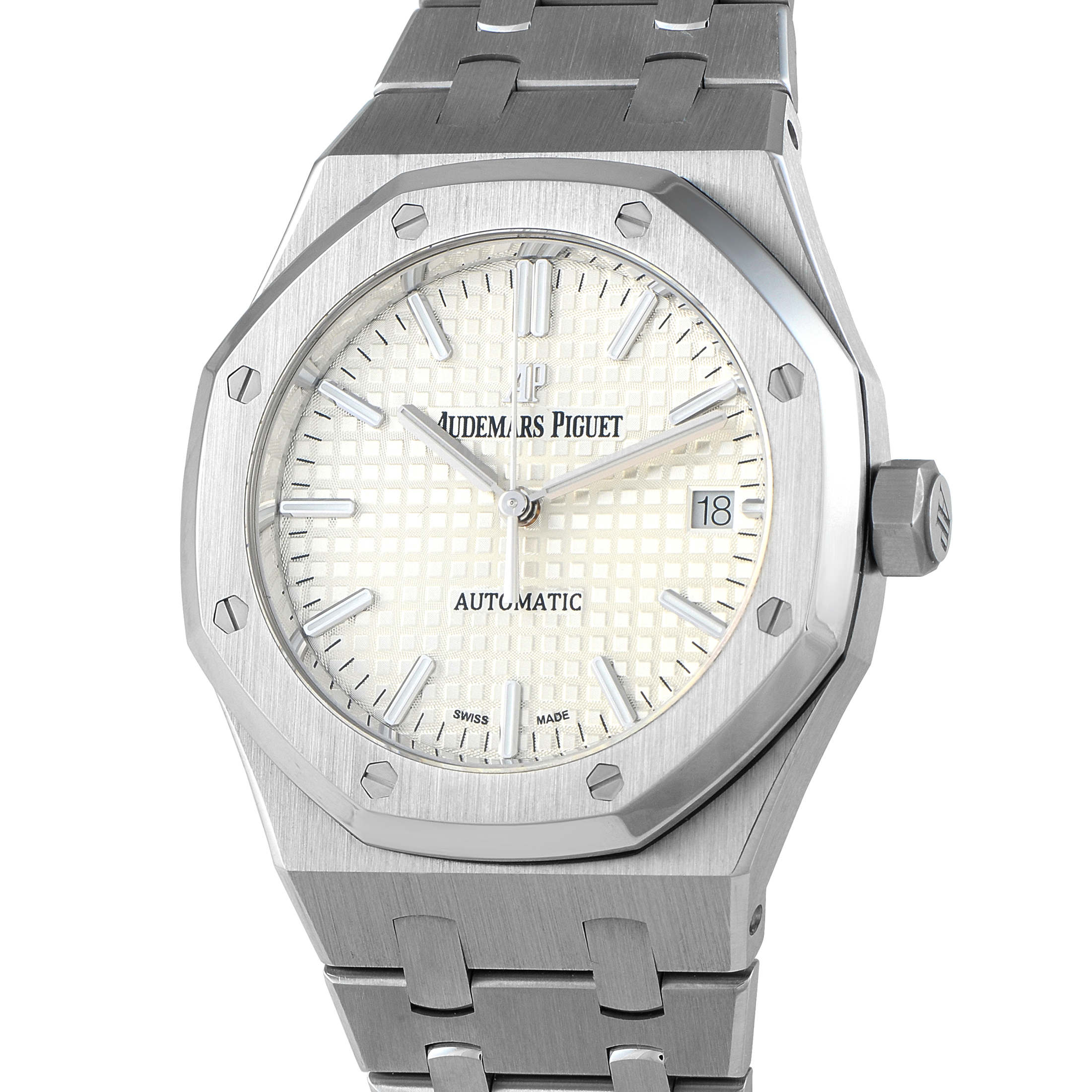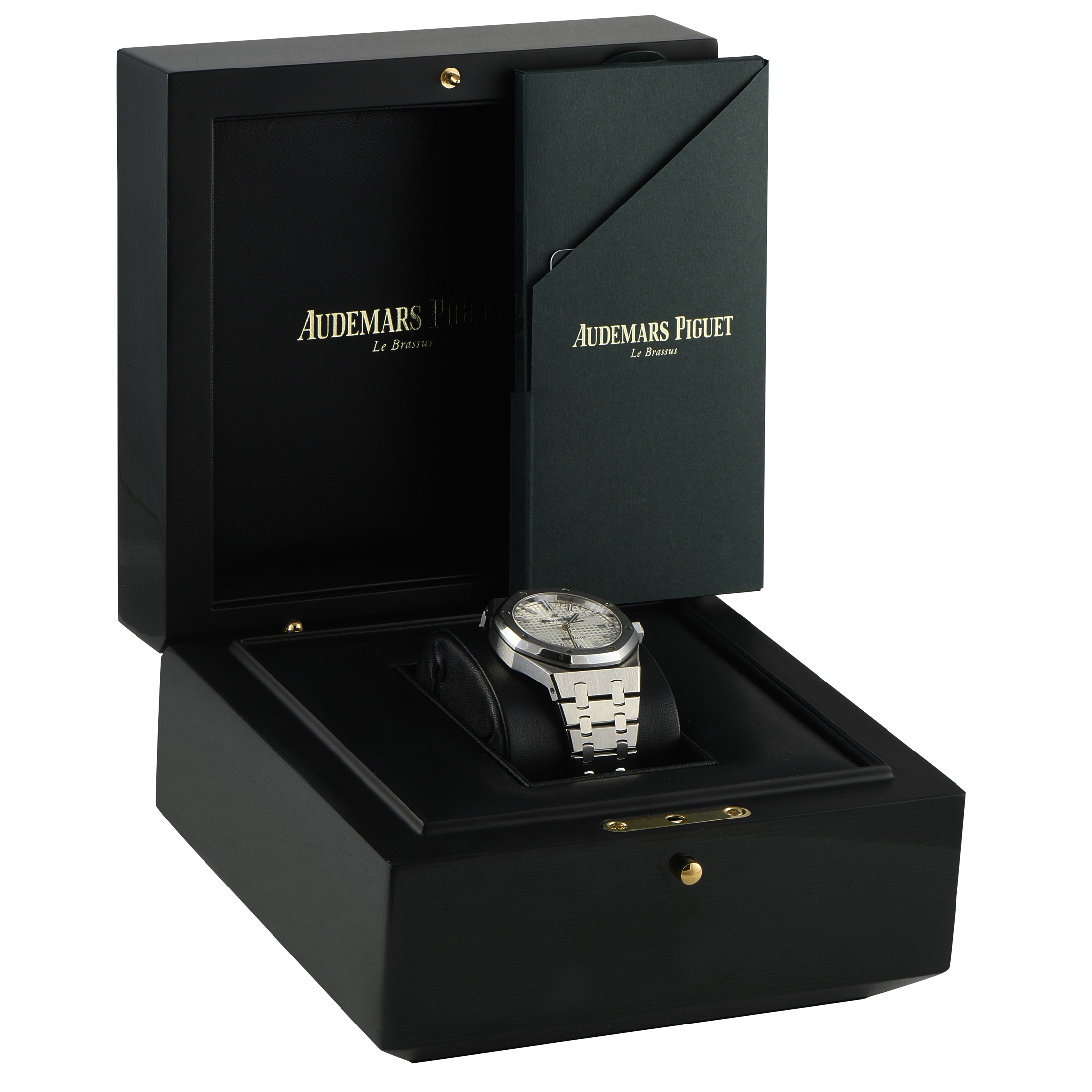 The luxury watch that’s built to endure. This Royal Oak 15450ST is presented in full stainless steel, with a 37mm case that sits well on the wrist and a versatile silvered Grande Tapisserie dial that pairs effortlessly with both casual and formal attire. It is powered by caliber 3120, a Swiss-made automatic movement with 282 parts, 40 jewels, and 60 hours of power reserve.