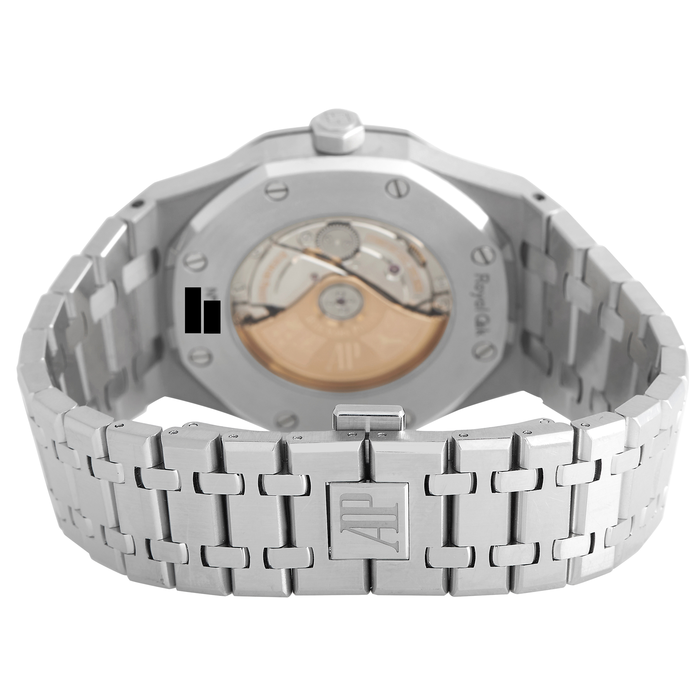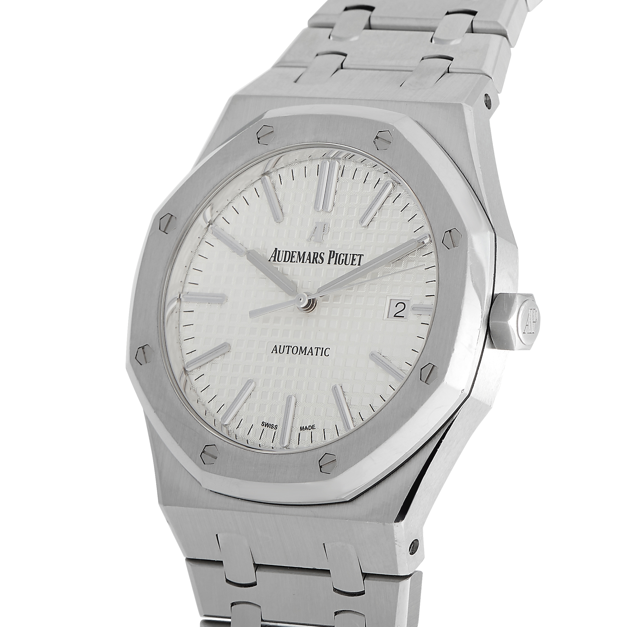 At 41mm, this Royal Oak ref.15400ST provides an even greater presence. It is a brawny, handsome, and versatile watch that can take it all. Its case and integrated bracelet are made out of stainless steel. The silver dial with the Grande Tapisserie pattern is a sight to behold, given its clean look and neat, legible layout. The watch is equipped with caliber 3120 automatic movement, which has 40 jewels, time and date functions, and a power reserve of 60 hours.