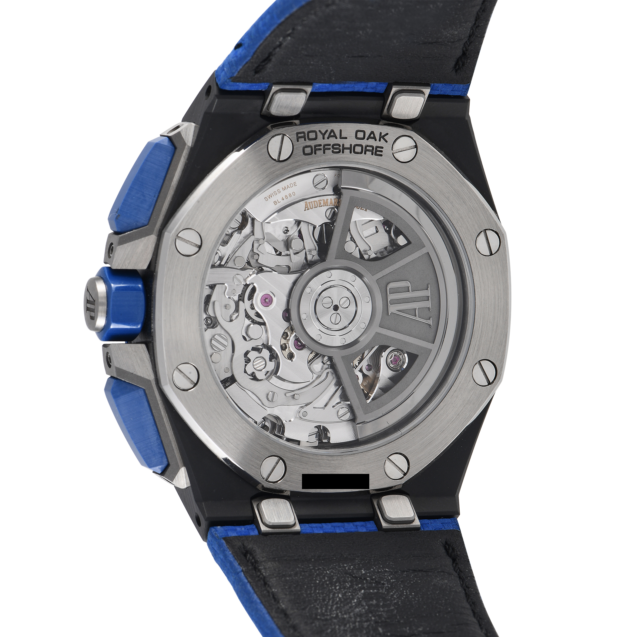 This pre-owned Audemars Piguet Royal Oak Offshore Blue Ceramic Bezel Watch 26420CE.OO.A043VE.01