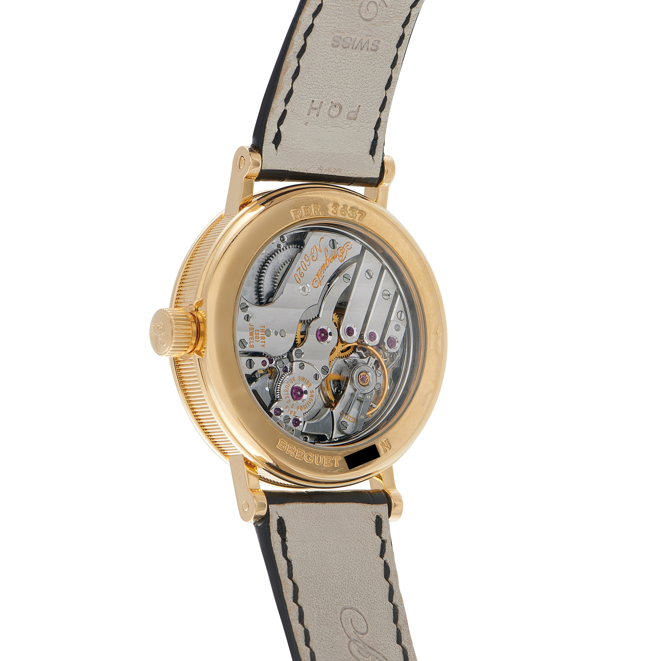 This is a pre-owned Breguet Classique Minute Repeater 18K Yellow Gold Watch 3637BA/12/286. It comes with a gift box.
