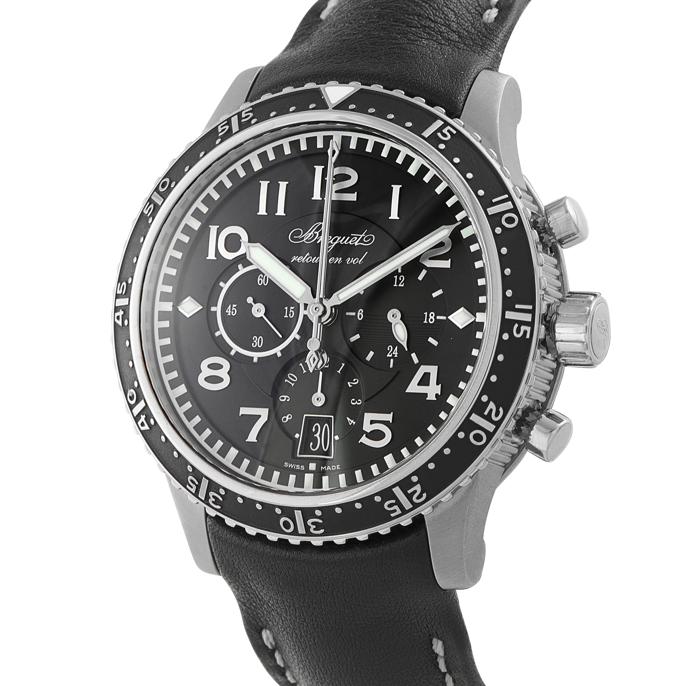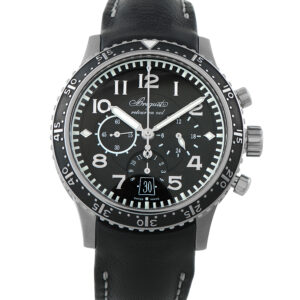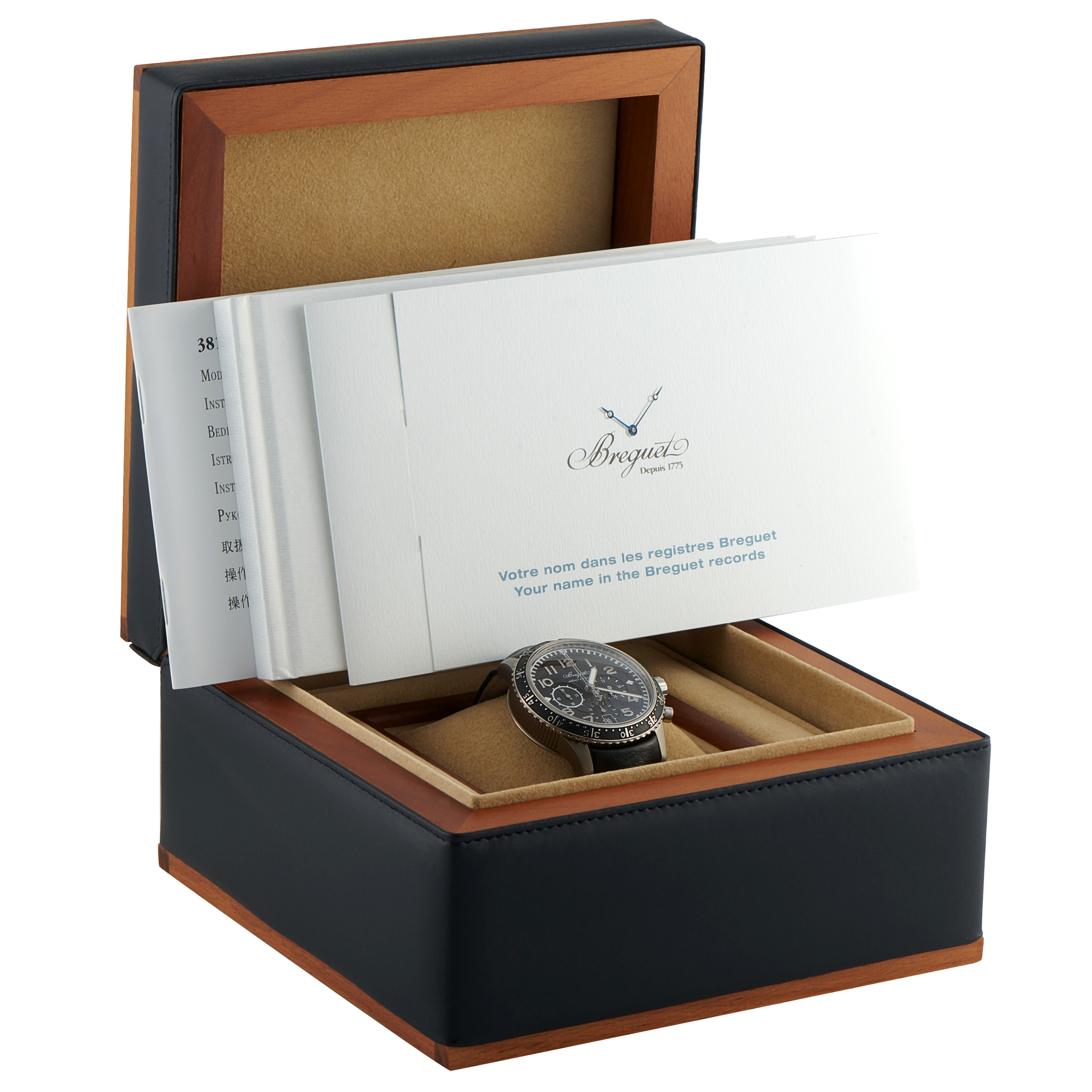 This is a pre-owned Breguet Type XXI Chronograph Titanium Watch 3810ti/h2/3zu. It is accompanied by papers and the manufacturer’s box.