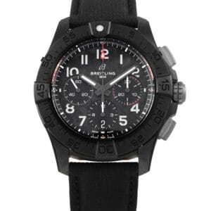 This pre-owned Breitling Avenger B01 Chronograph 44 Night Mission Watch SB0147 comes with an extra strap, papers, and the manufacturer’s box.