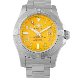 This is a pre-owned Breitling Avenger II Seawolf Yellow Dial Steel Watch A1733110/1519. It comes with papers and a leather travel watch case.