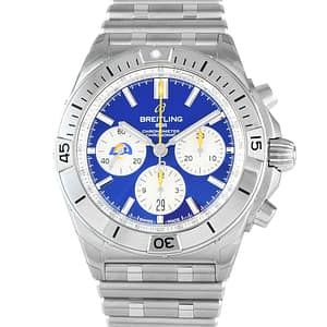 This is an unworn Breitling Chronomat B01 NFL Los Angeles Rams Edition Watch AB01342B1C9A1. It comes with papers and the manufacturer’s box.