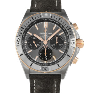 The Chronomat B01 Triumph Edition ref.TB0134101M1X1 is the result of Breitling and Triumph Motorcycles’ third collaboration. This is a 42mm watch with a 200m water resistance. Its case, bezel, and lugs are crafted in titanium, while the crown, push-pieces, and the ring that frames the bezel are in 18K red gold. An anthracite dial rounds out the masculine look of this timepiece. On the dial are luminescent red gold hands and hour markers, plus a trio of sub-dials in black. The Triumph logo serves as the central seconds hand’s counterweight, while their “for the ride” motto can be seen on the inner tachymeter scale. At the heart of this watch is Caliber 01, a COSC-certified chronograph movement with 70 hours of power reserve. The watch is supplied with a leather strap.