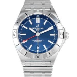 This pre-owned Breitling Chronomat GMT Blue Dial Automatic Watch A32398101C1A1 comes with papers and the manufacturer’s box.