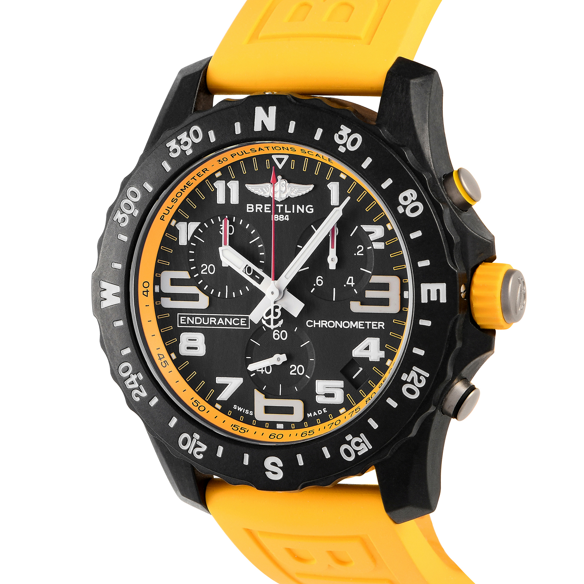 This unworn Breitling Endurance Pro Breitlight Yellow Watch X82310A414B1S1 is accompanied by papers and the manufacturer’s box.