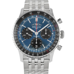 Impeccably crafted, this timepiece features a 41mm case, bracelet, and bidirectional revolving slide-rule bezel crafted from Stainless Steel. The blue dial includes luminous silver-toned hands, luminous index markers, a tachymeter scale, a date dial located at the 6-o-clock position, and a trio of chronograph sub-dials – a 30 minute sub-dial at the 3-o-clock position, a 12 hour sub-dial at the 6-o-clock position, and a small seconds sub-dial at the 9-o-clock position. It’s powered by a B01 automatic movement with 70 hours of power reserve time. It’s also water resistant up to 30 meters.